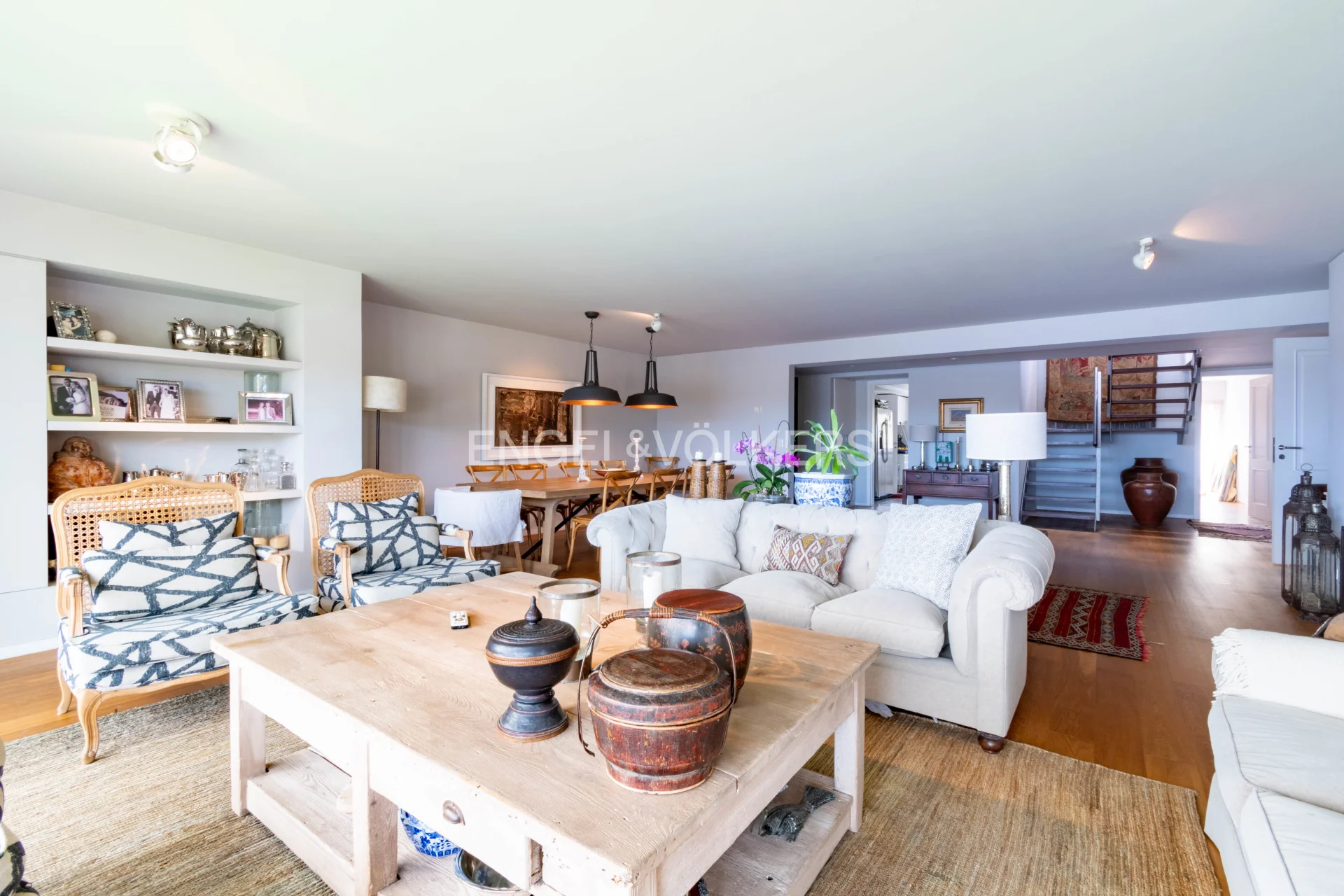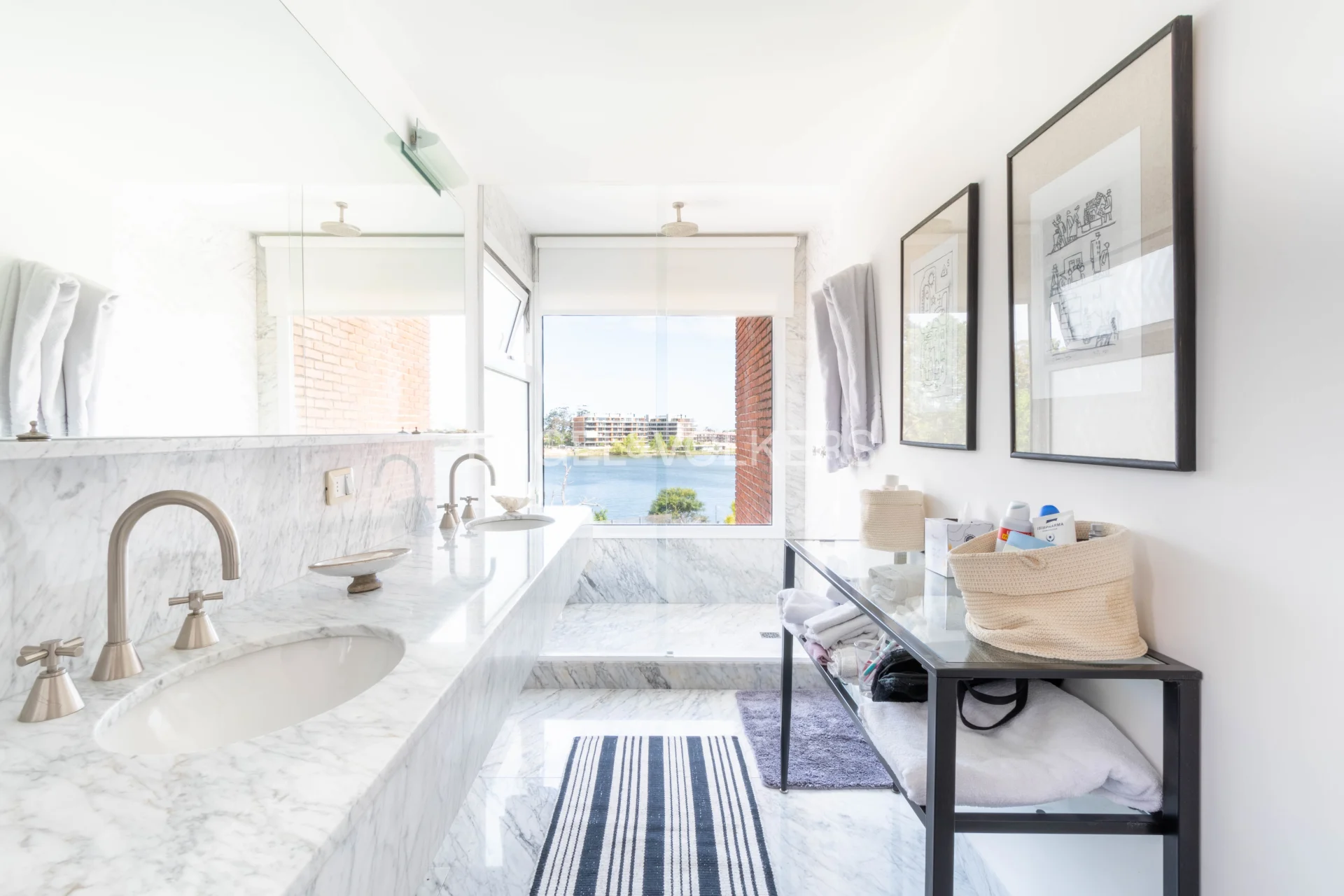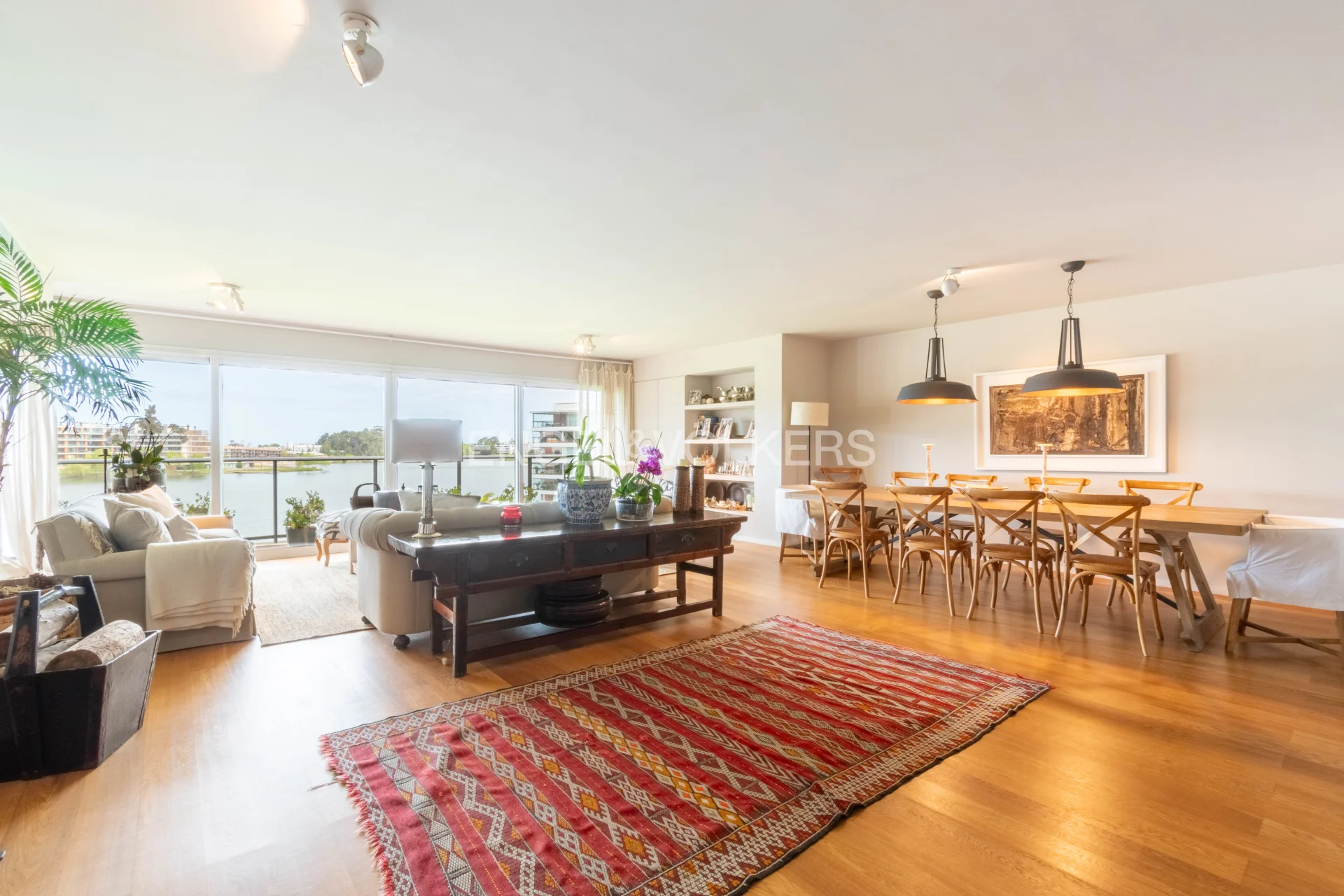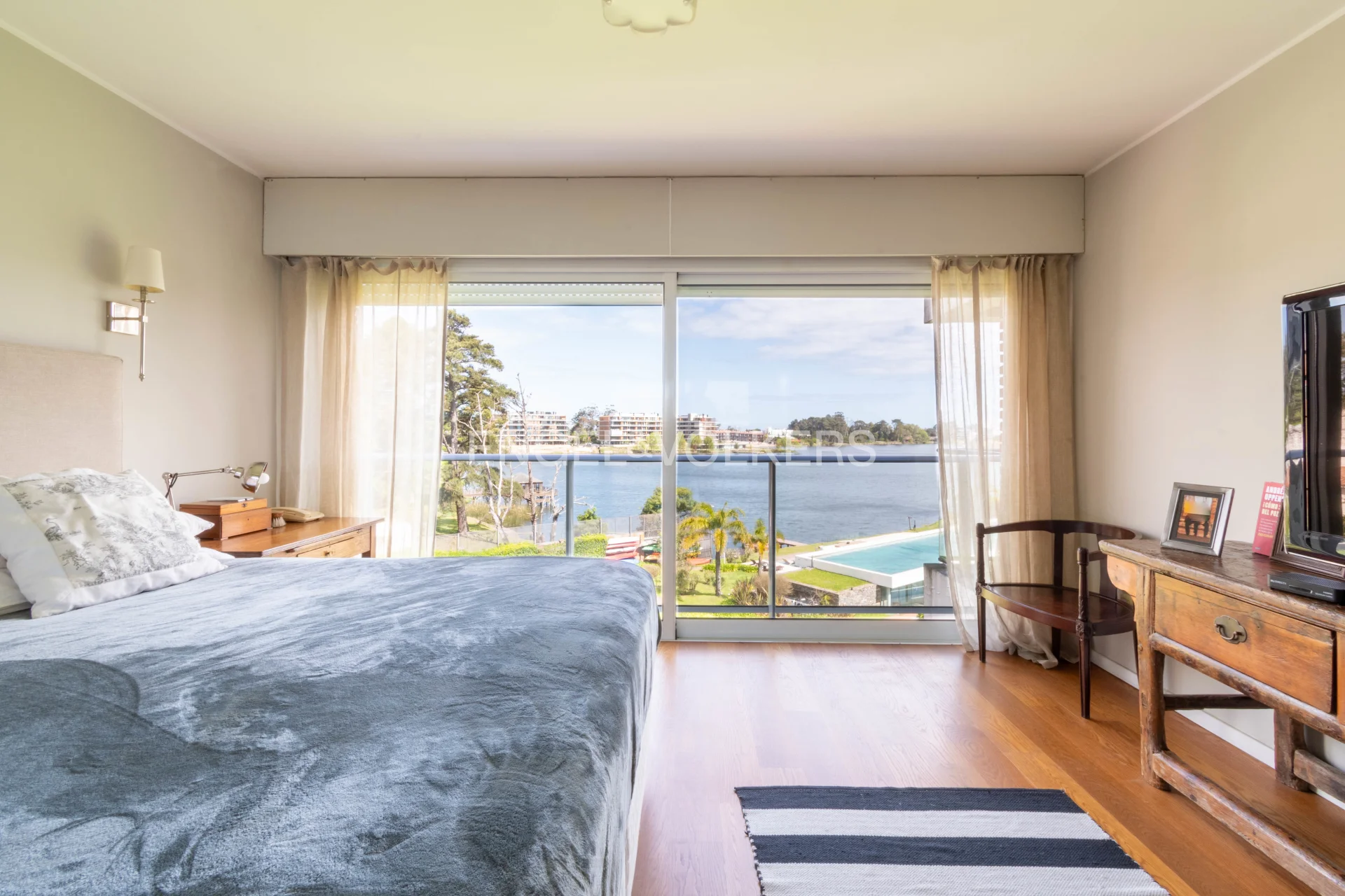 Espectacular penthouse duplex con 266 m2 desarrollados en 2 plantas, y unos 135 m2 de terrazas, en complejo de primera categoría en Parque Miramar. En el primer nivel dispone de fantástico living comedor con estufa a leña con espectacular vista al lago, baño social, y amplia cocina. 4 dormitorios en suite: el principal con vista al lago, y 4to dormitorio en suite o servicio. Una escalera lleva al 2do nivel que ofrece un gran playroom o 2do estar con estufa a leña con vista al lago, lavadero, y una disfrutable terraza con parrillero. Calefacción por losa radiante eléctrica. Garaje para 3 autos.