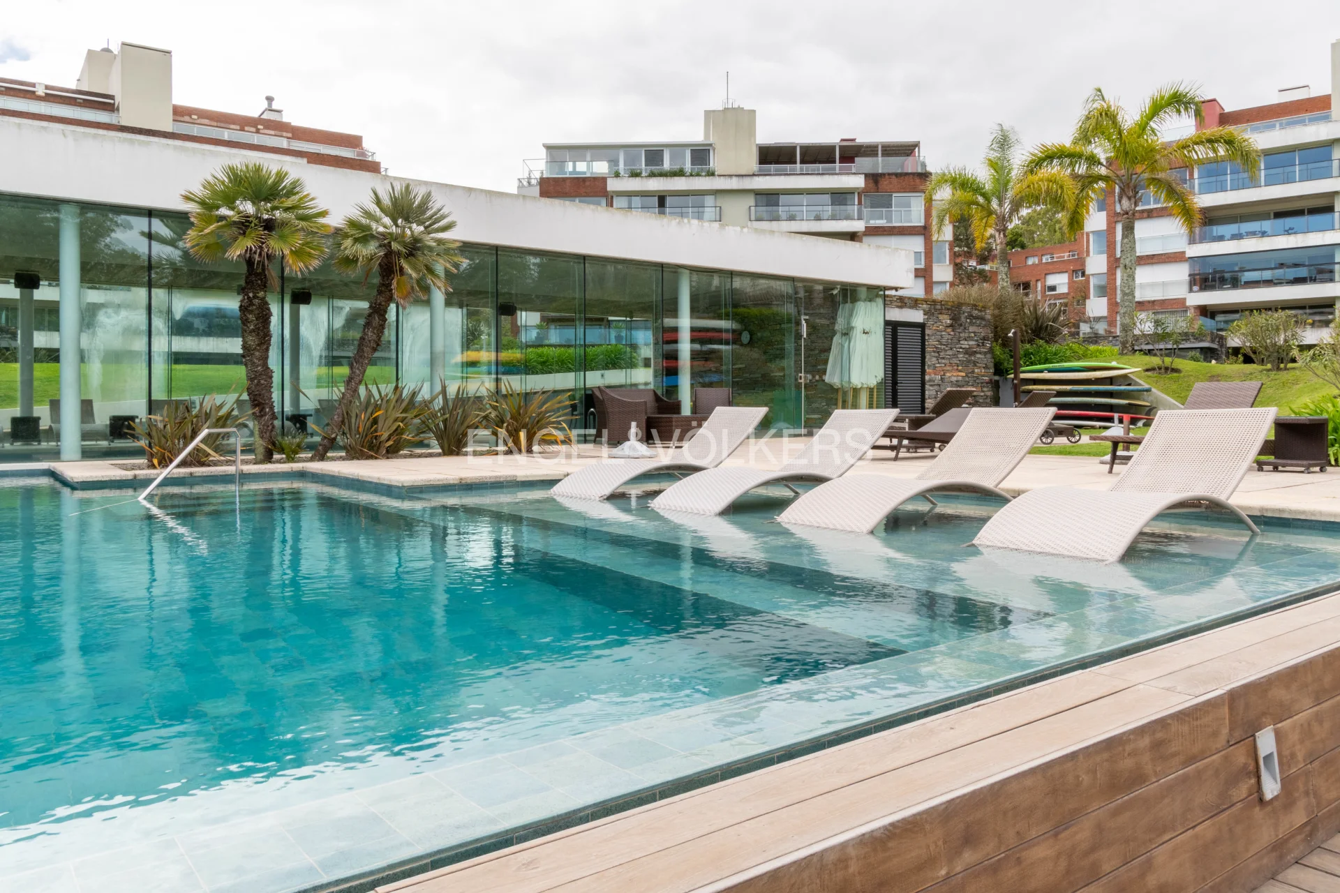 El complejo Bilú ofrece altísima seguridad y portería 24 horas, y cuenta con amenities de primer nivel: piscina exterior, piscina interior climatizada, gimnasio, sauna, jacuzzi, sala de masajes, playa de arena con acceso al lago, y gran barbacoa de uso común. Servicio de mucamas opcional.