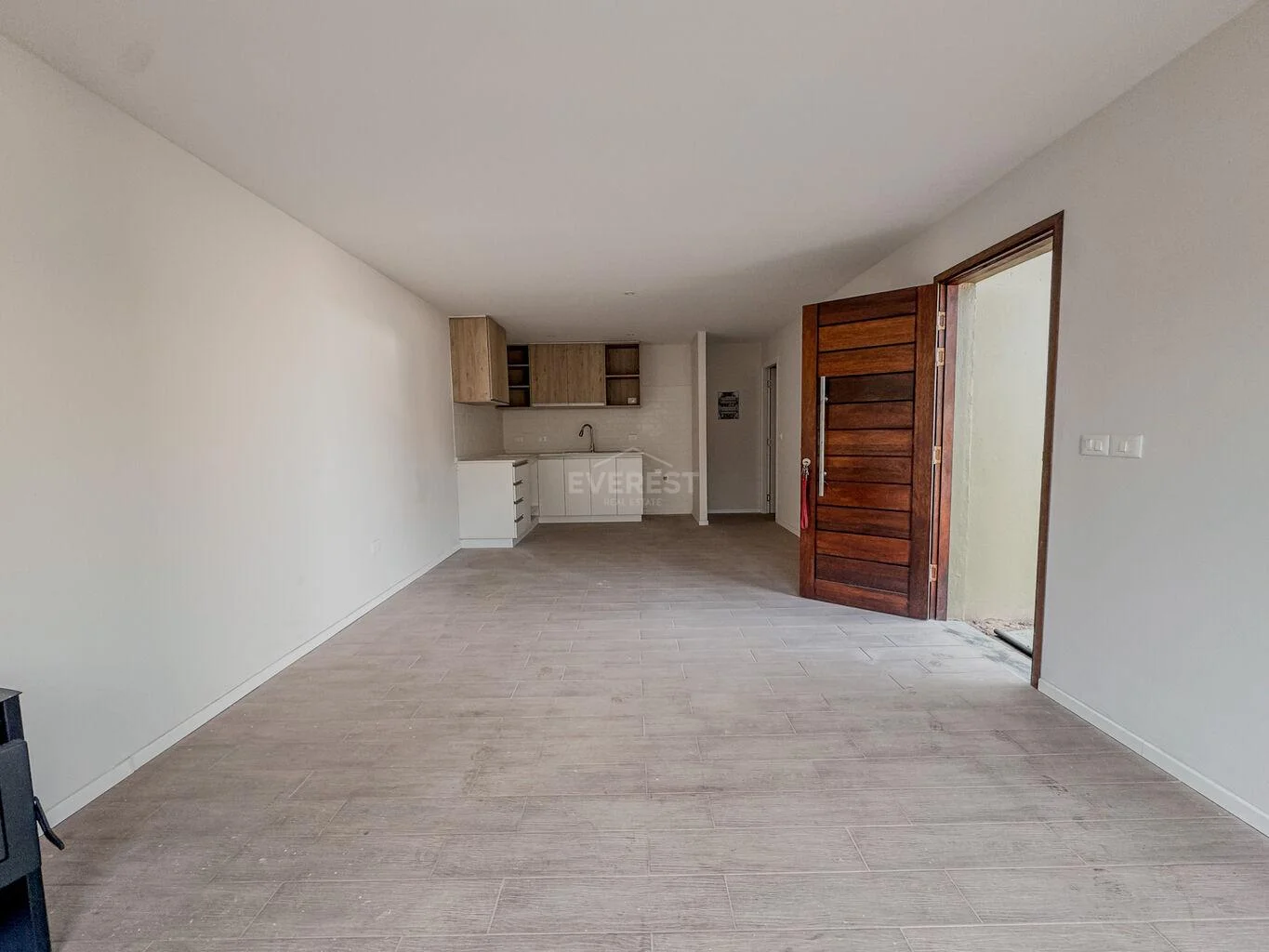 El interior está pensado para aprovechar la luz natural, con un living-comedor amplio y ventanales grandes que llenan los ambientes de claridad.