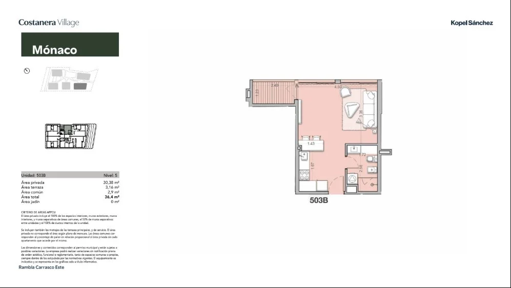Monoambiente en Costanera Village – Rambla Costanera y Acapulco