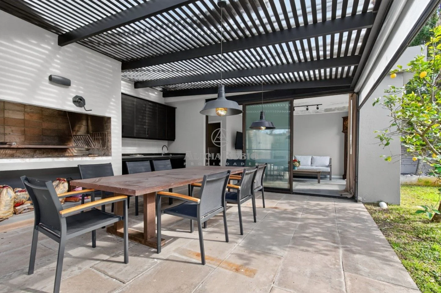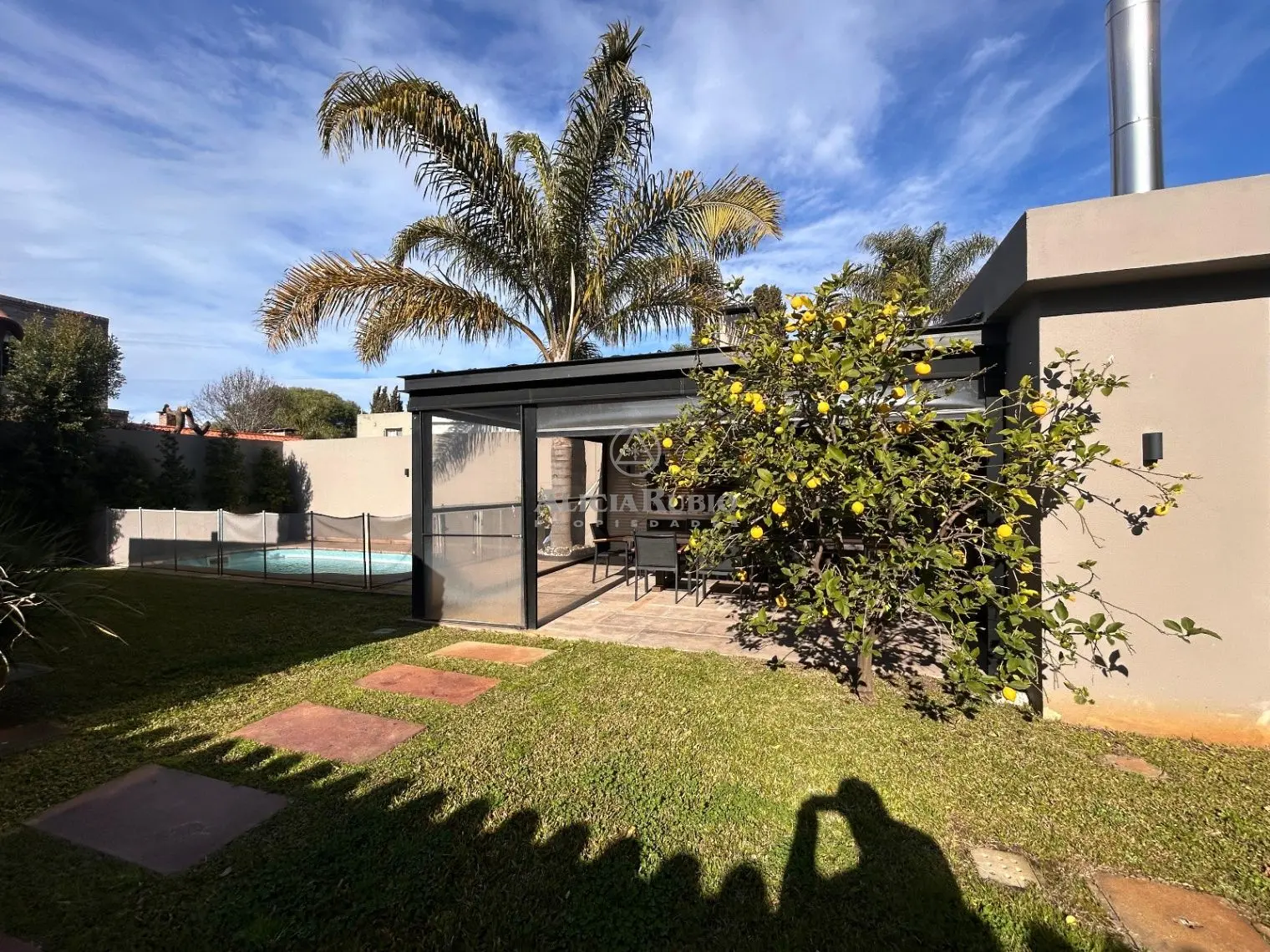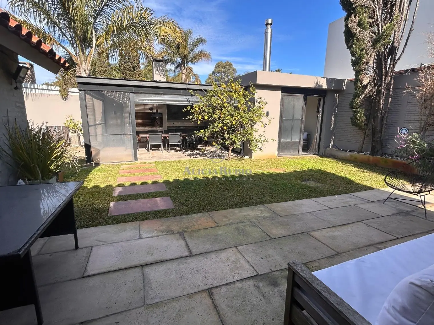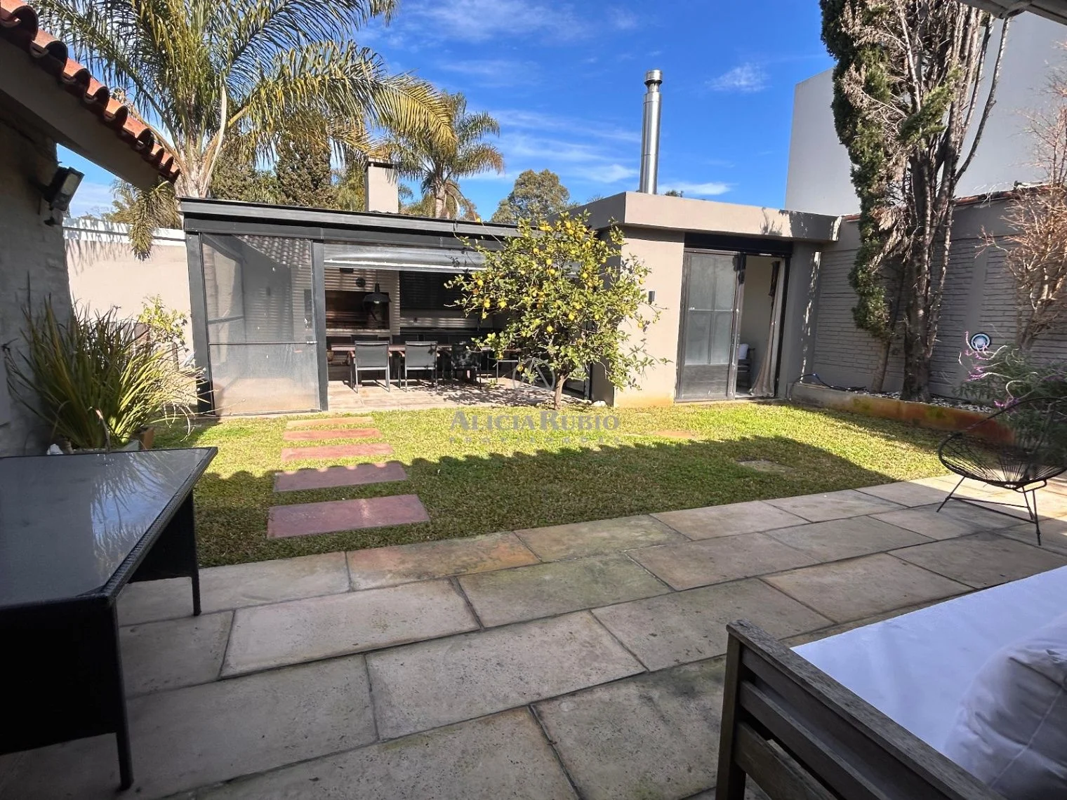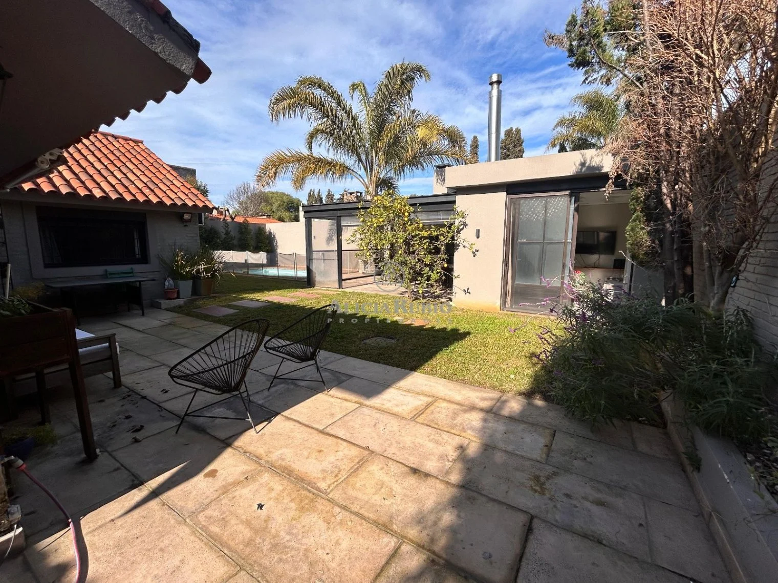 Reja perimetral al frente. Jardín con cochera para 2- 3 autos.