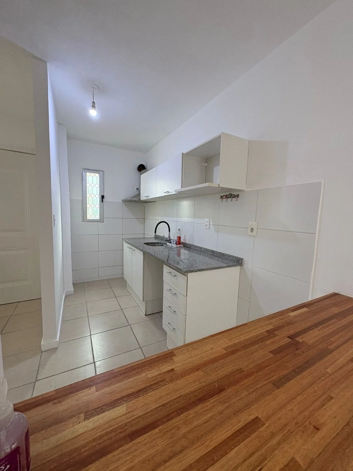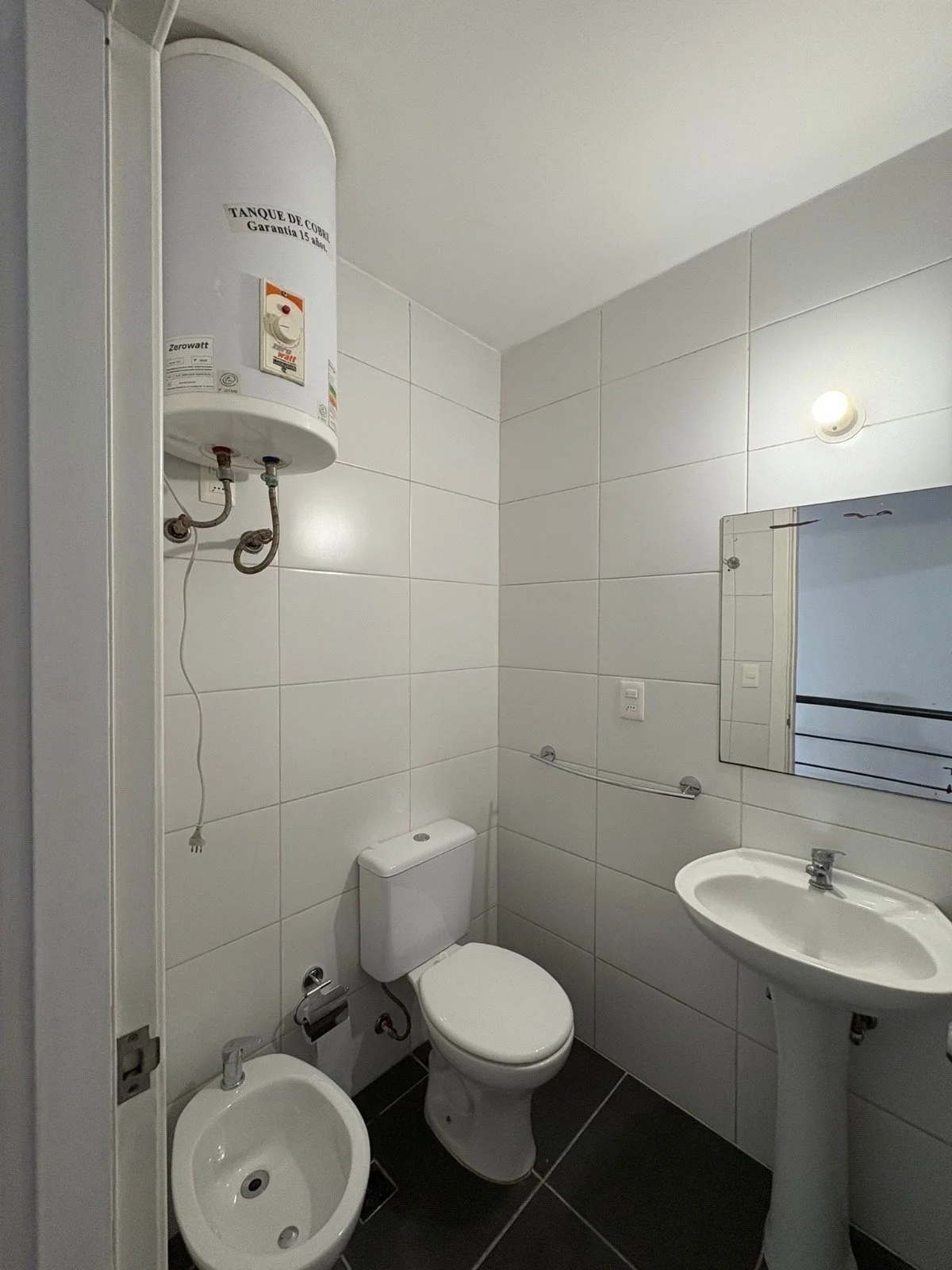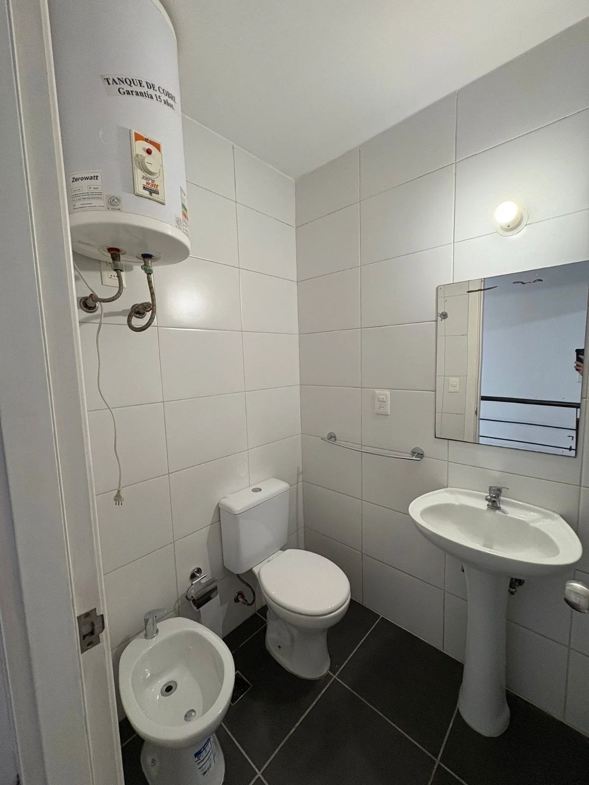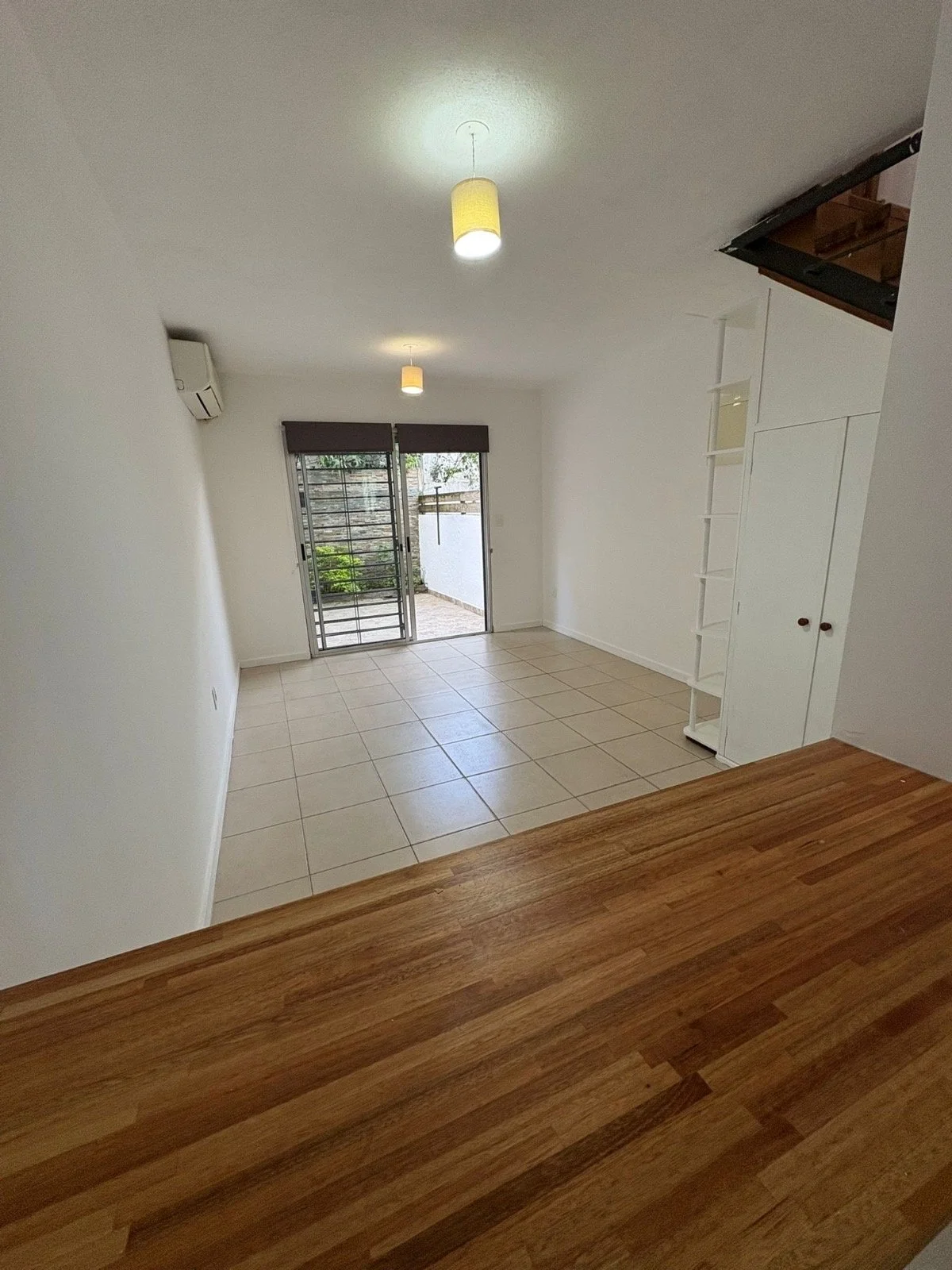 El interior ofrece un living con cocina integrada, dos dormitorios bien iluminados y un baño completo. Dispone de aire acondicionado en todos los ambientes, campana extractora en la cocina, calefón instalado y antena de Direct TV.