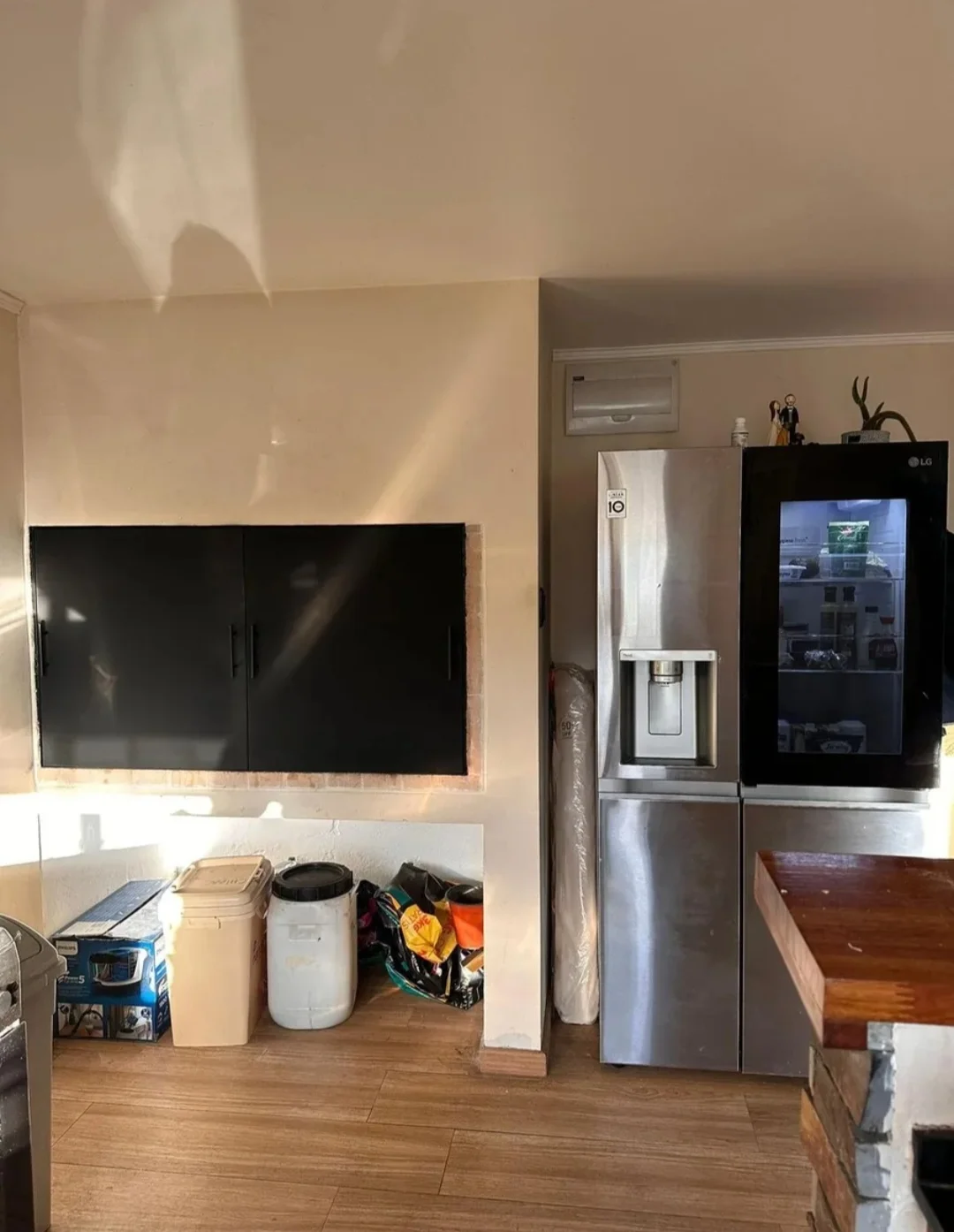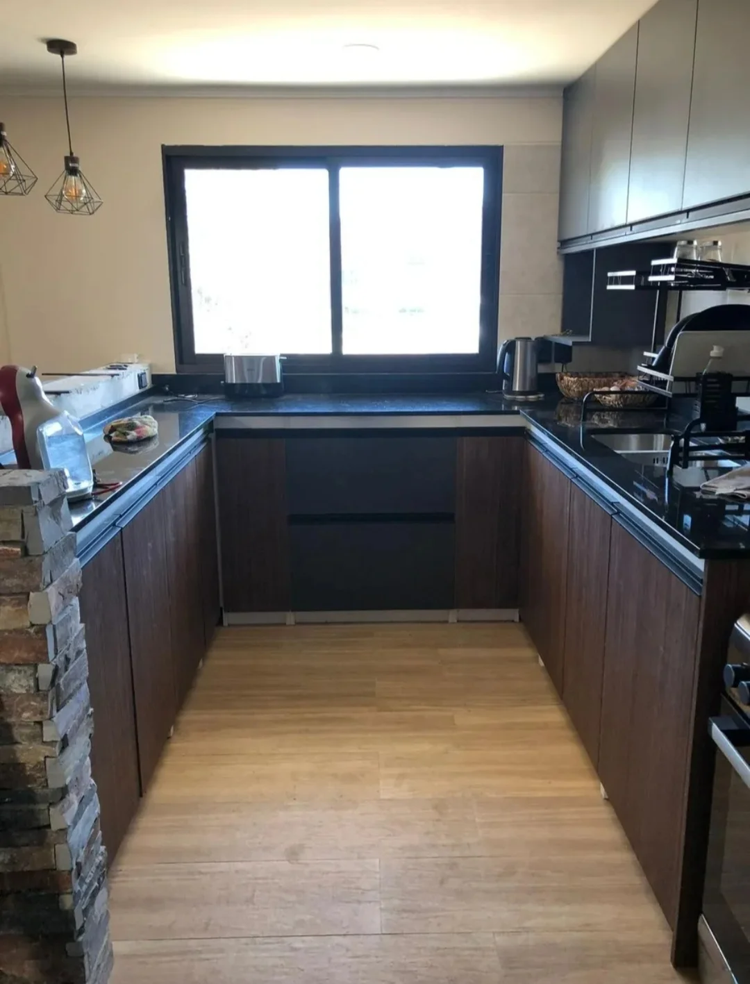 - Cocina nueva con diseño en U, barra, muebles a medida y parrillero interno.