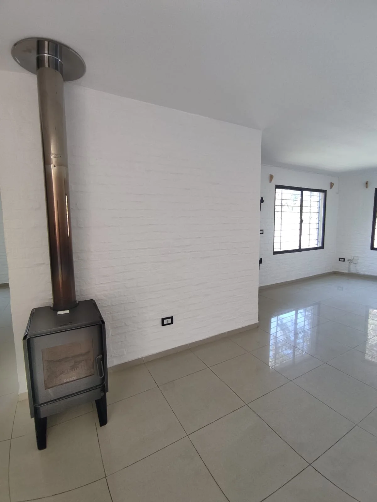 Amplio, living comedor al frente con gran ventanales, estufa de alto rendimiento. y aire acondicionado.