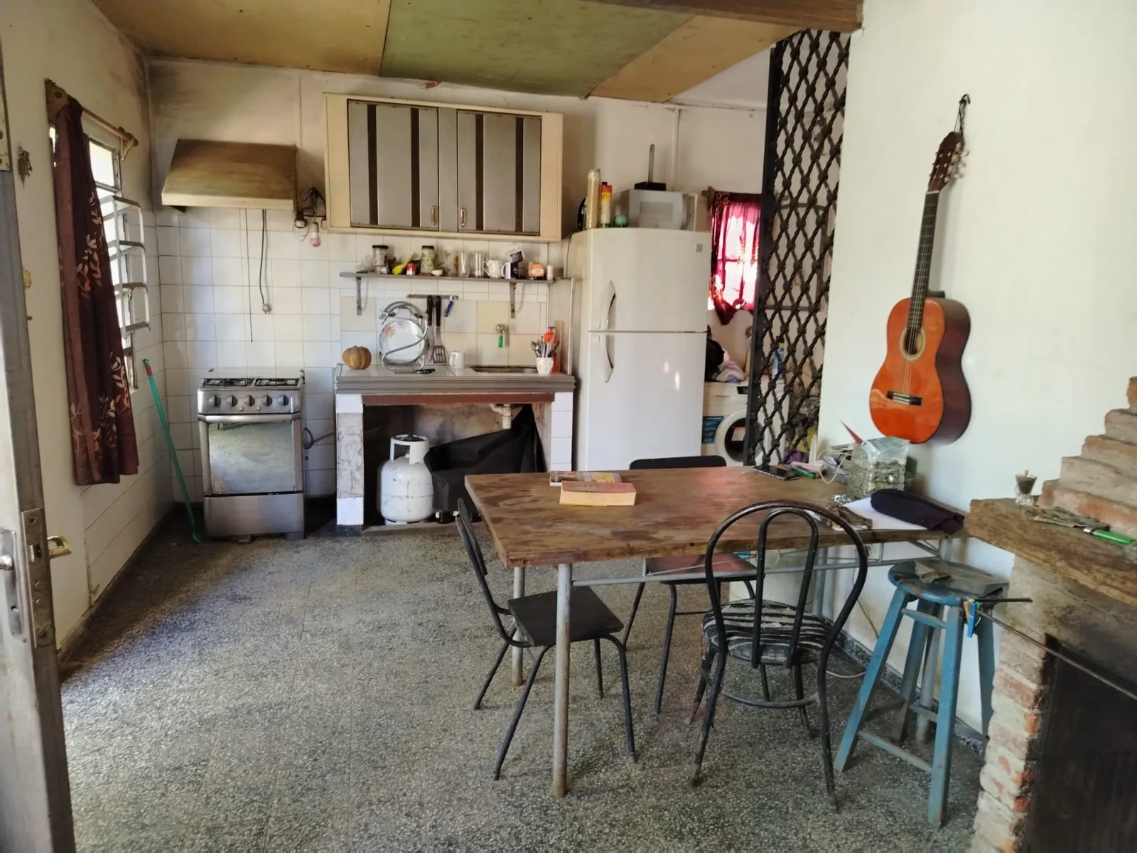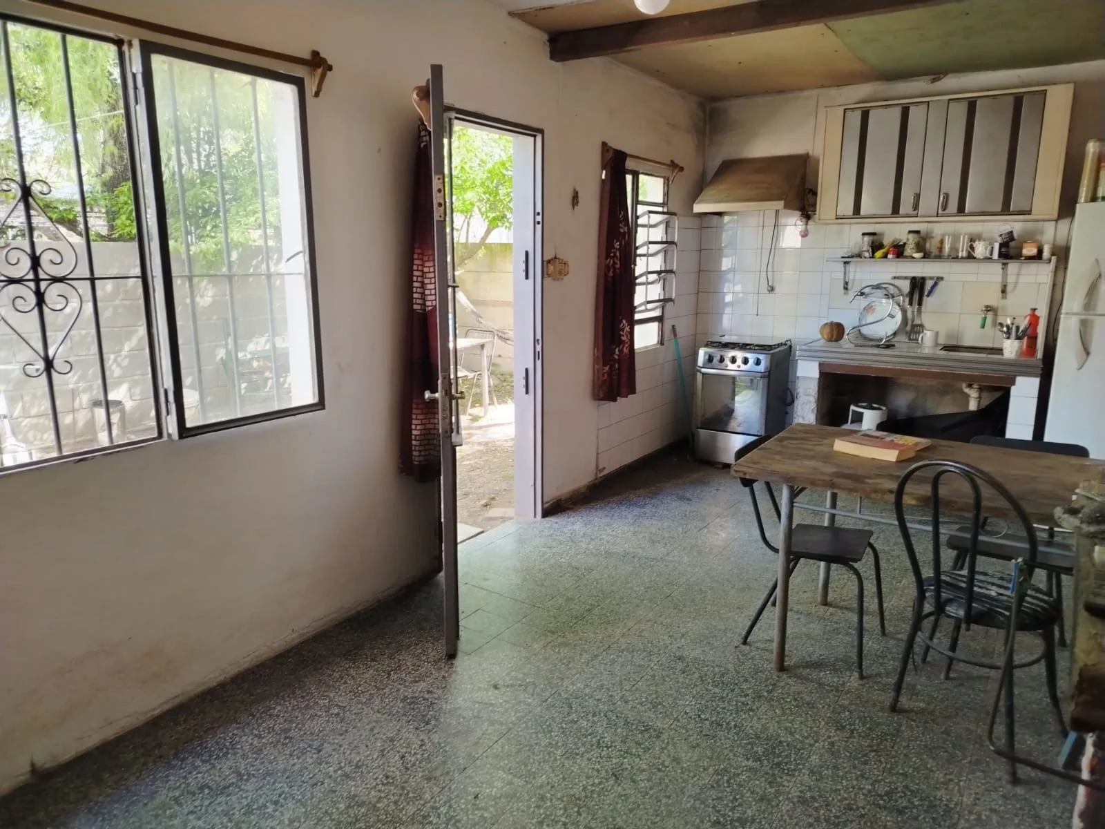 2) AL FONDO CASA DE CONSTRUCCION TRADICIONAL DE UN DORMITORIO AMPLIO Y VENTILADO, LIVING CON COCINA INTEGRADA, ESTUFA A LEÑA. BAÑO COMPLETO DE BUEN TAMAÑO.