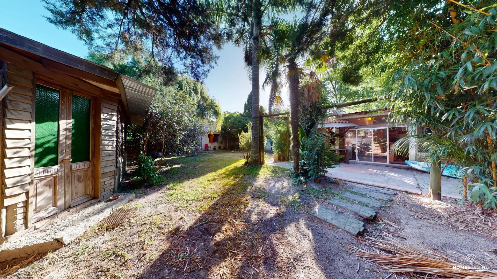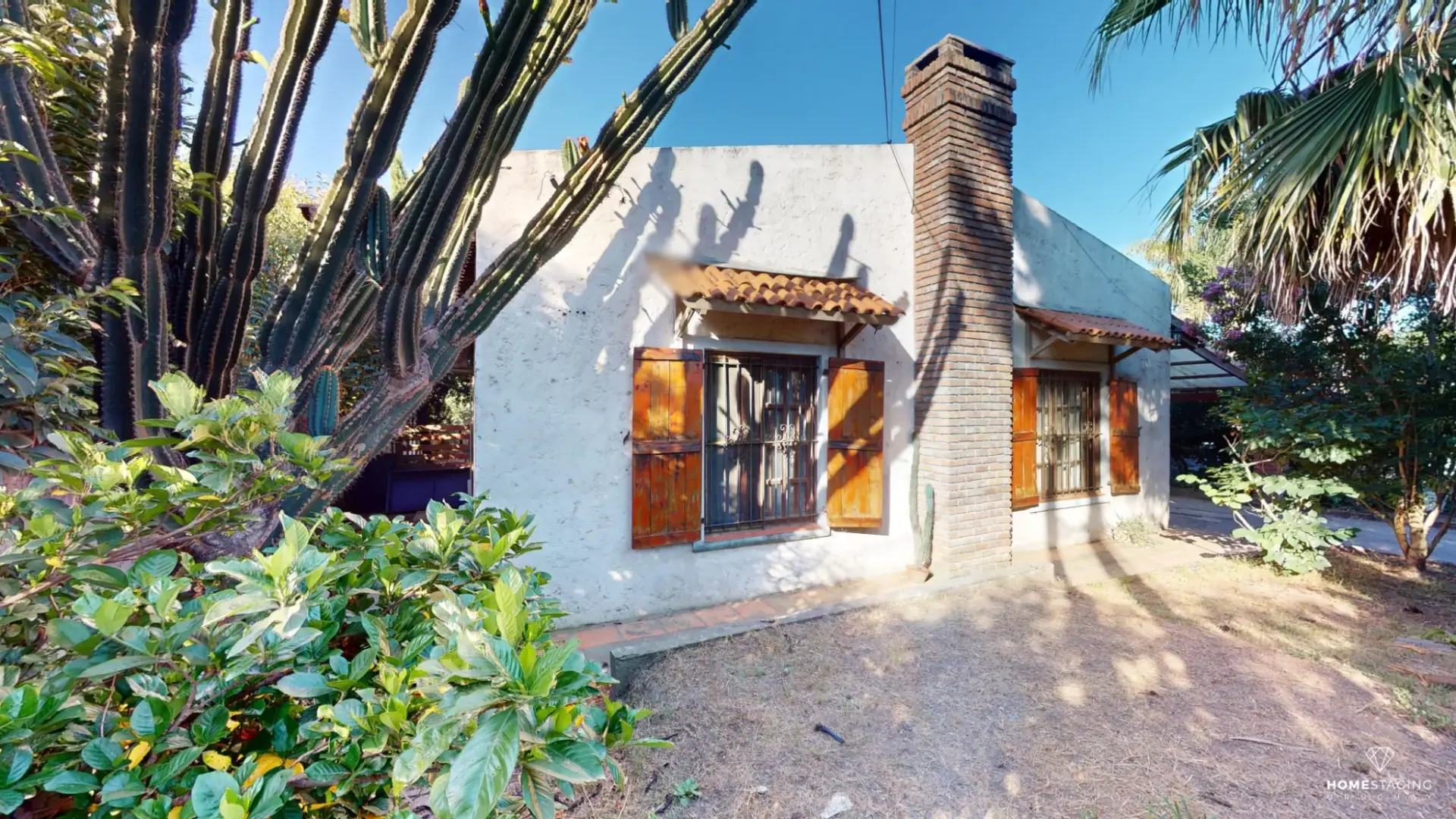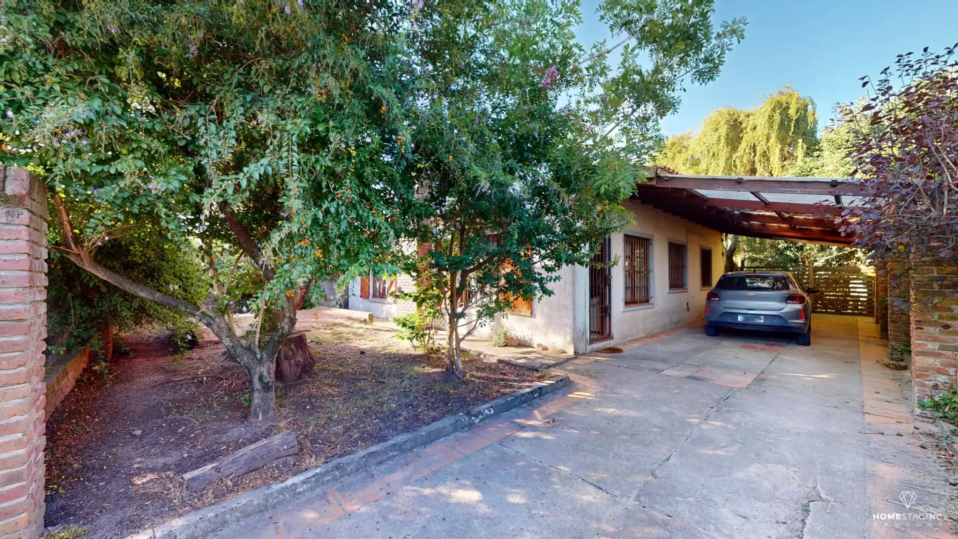 Ingreso a propiedad por living con estufa a leña, pisos de diseño rústicos en cemento alisado, hall de distribución a 3 habitaciónes, baño y cocina independiente con salida a amplio fondo arbolado. La propiedad cuenta con rejas en aberturas. AA en dormitorio principal. Asoleamiento Oeste al frente / Este al fondo. Luego a la salida de cocina o por ingreso lateral indpendiente, gran fondo con barbacoa, parrillero techado, pequeño galpón y construcción secundaria que puede oficiar de consultorio, oficina, taller o como se destina actualmente gym.