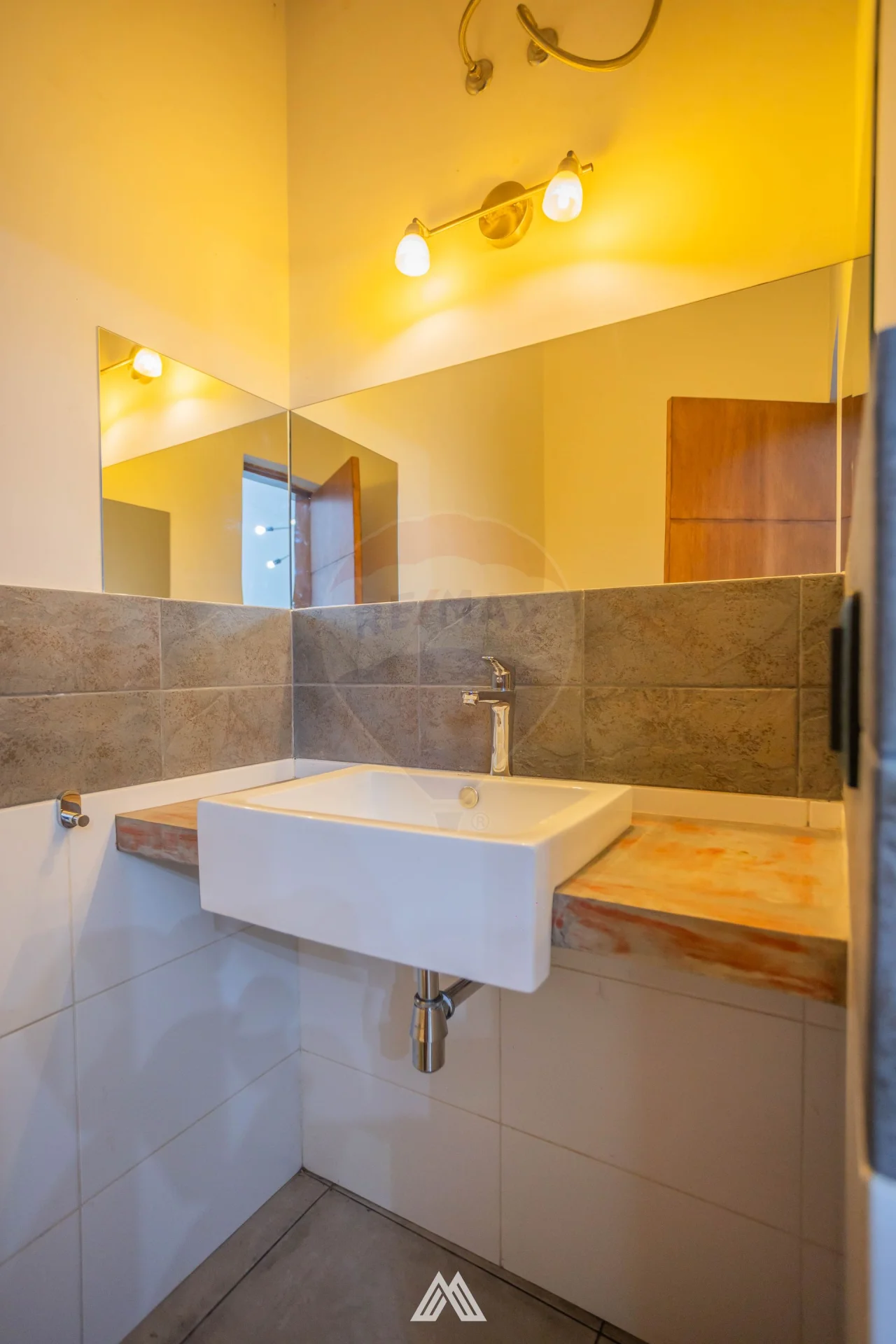 La casa cuenta con una amplia suite al frente, equipada con grandes placares y un elegante baño.