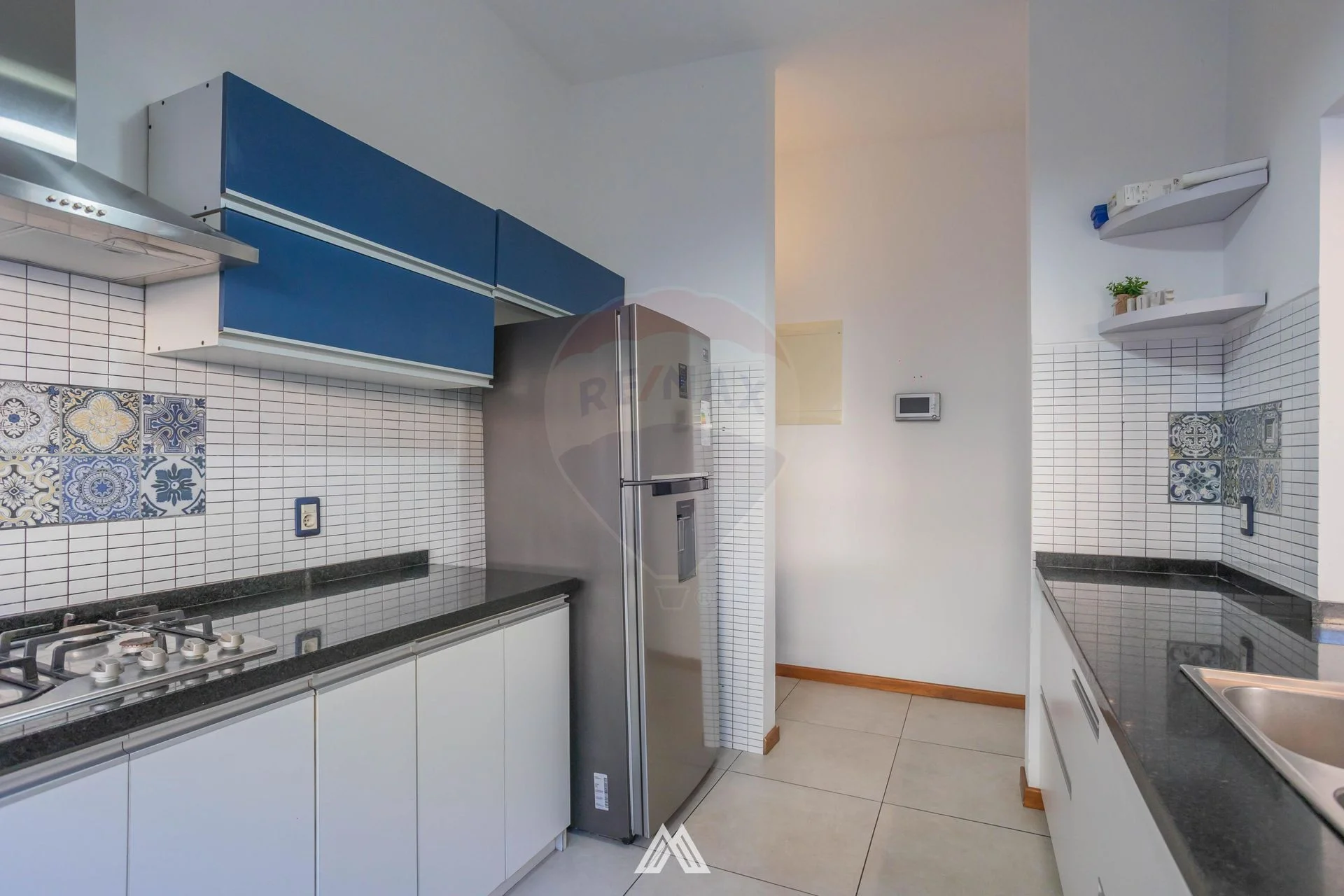 La cocina integrada, de diseño contemporáneo, presenta una isla central que se conecta naturalmente a un acogedor estar con estufa, ideal para disfrutar en familia.