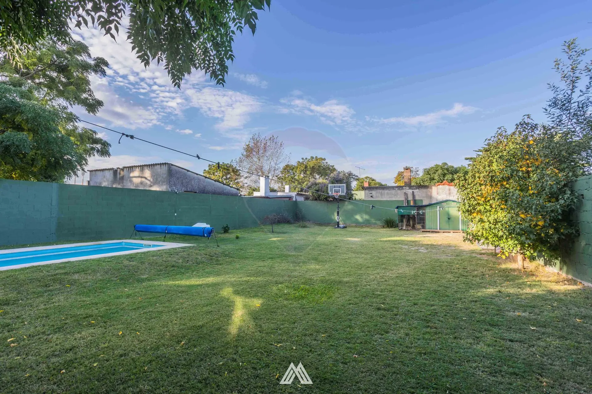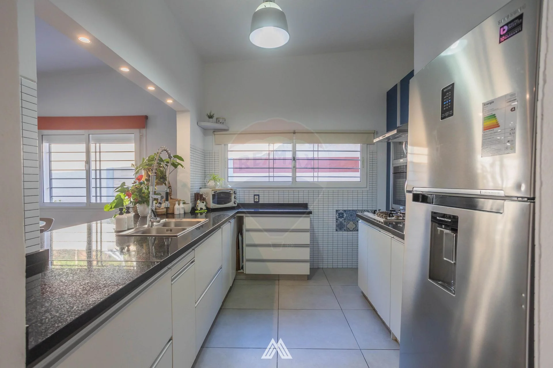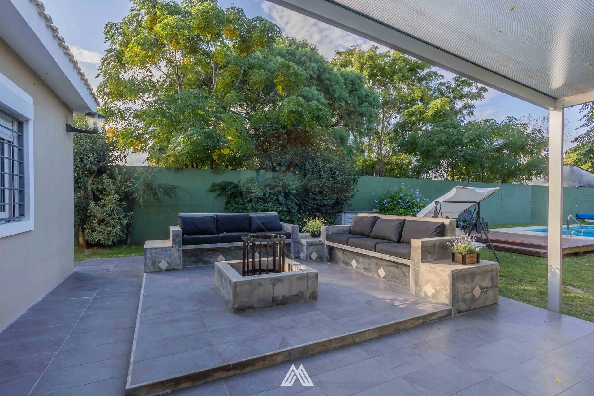 Los grandes ventanales nos invitan al exterior, donde encontramos una hermosa barbacoa con horno de pan, deck con fogón y una piscina rodeada de un entorno verde que invita al relax.
