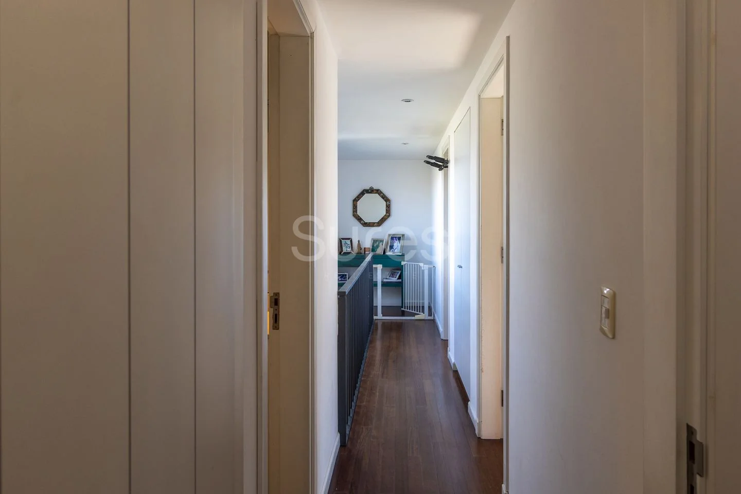En planta alta se ubican tres dormitorios, el principal en suite, todos con orientación norte con buena ventilación y dimensiones cómodas. Cuenta además con servicio completo, que puede destinarse a escritorio, cuarto de huéspedes o espacio independiente de trabajo. Lavadero