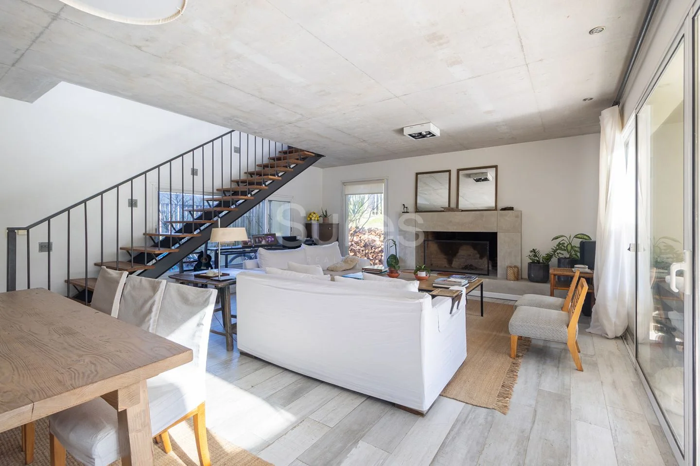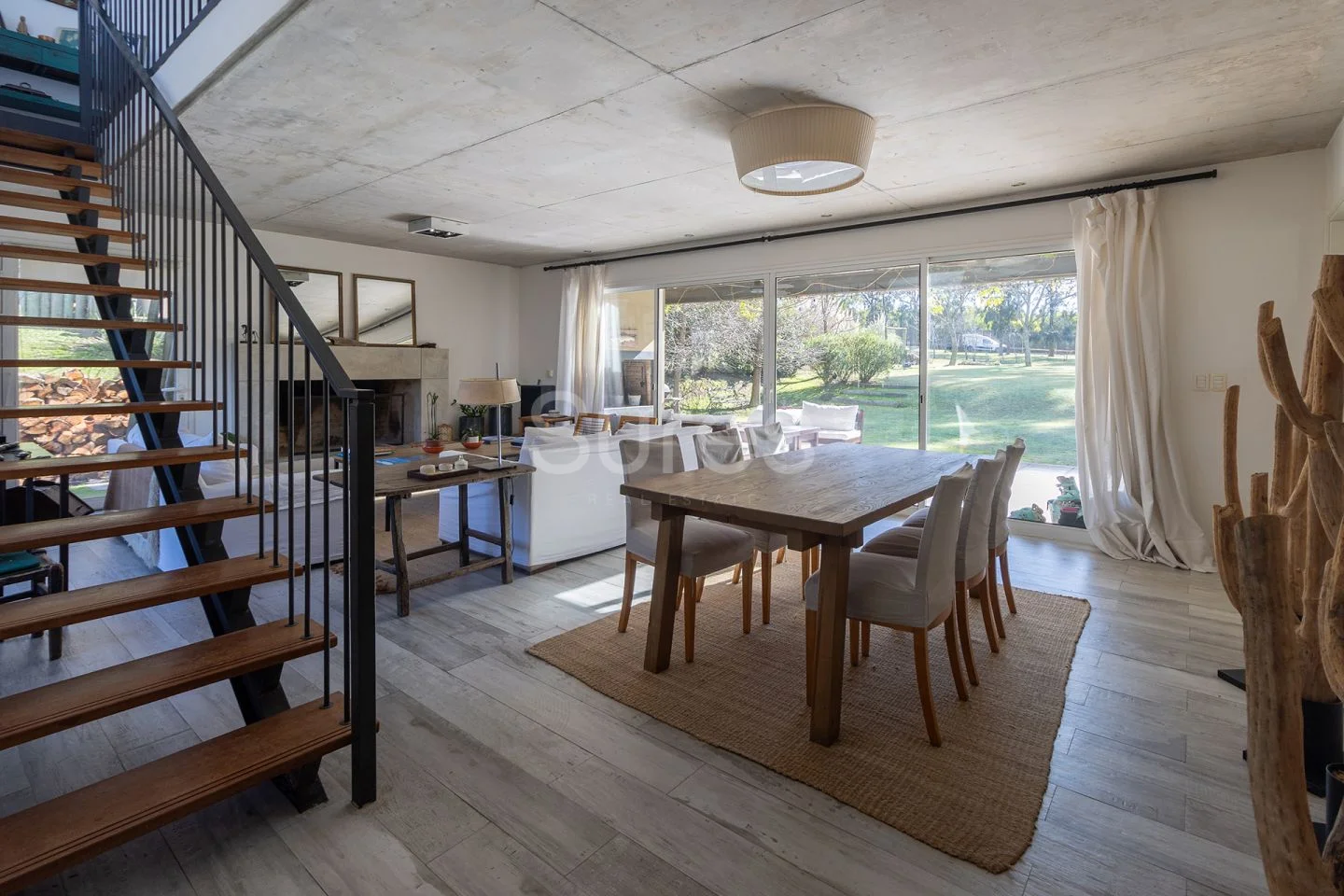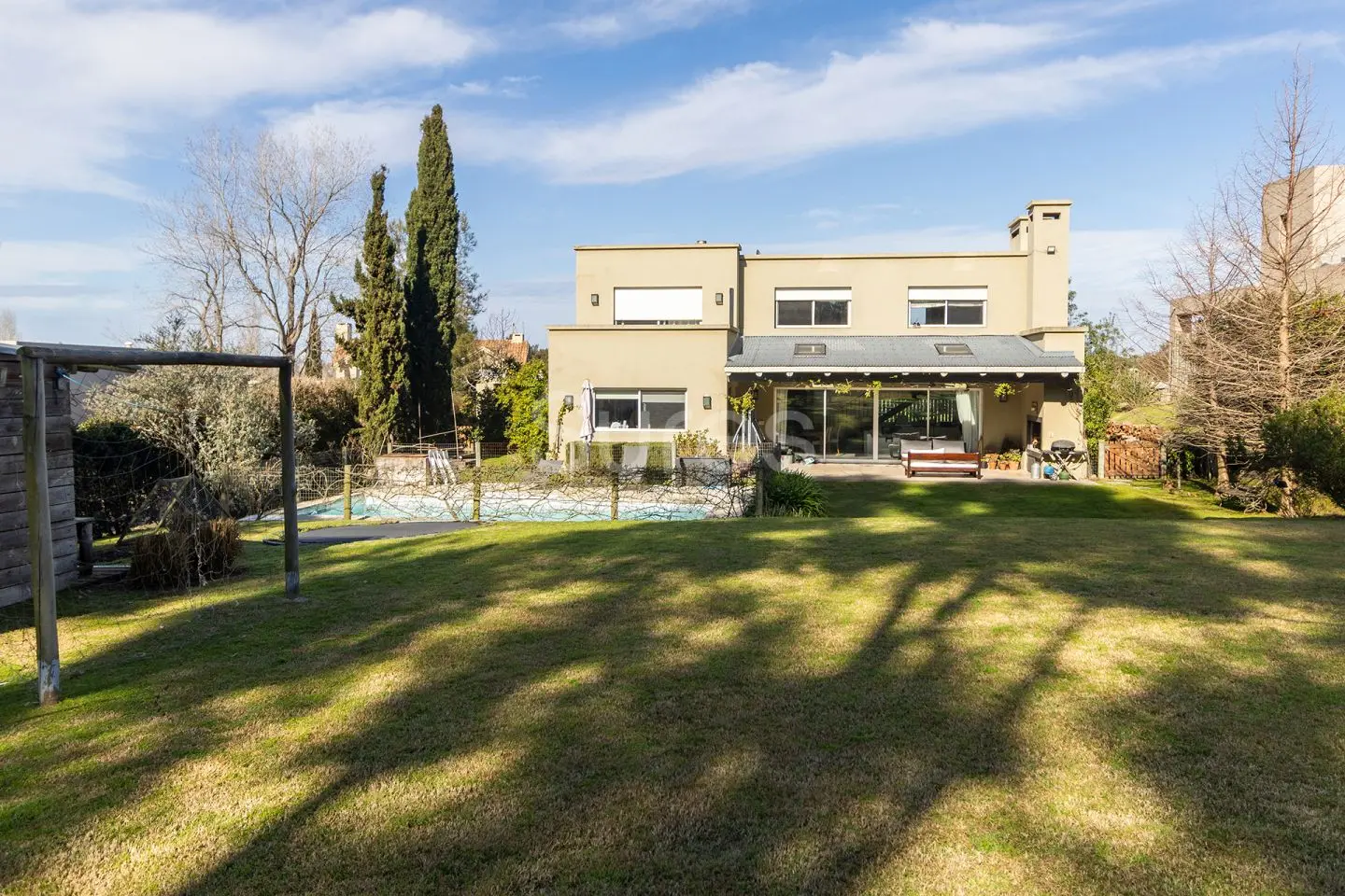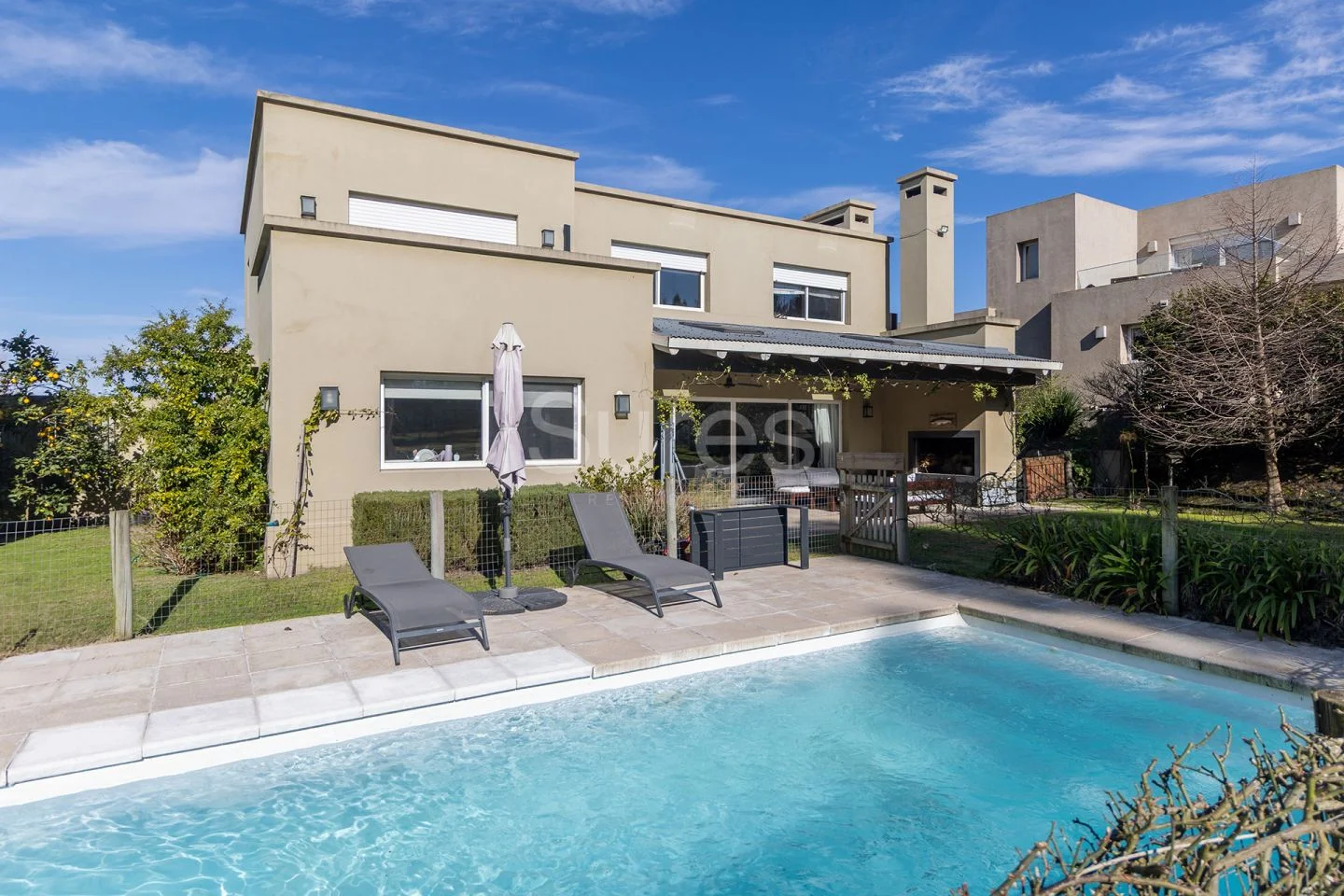El ingreso principal se da a través de un patio que aporta privacidad a esta casa de amplios ventanales. En planta baja cuenta con un cómodo living-comedor con estufa a leña y toilette social. El estar diario, con estufa de alto rendimiento integrado a una cocina amplia y funcional, con salida directa a la galería con parrillero y un lindismo jardín con piscina orientado todo hacia el Norte.