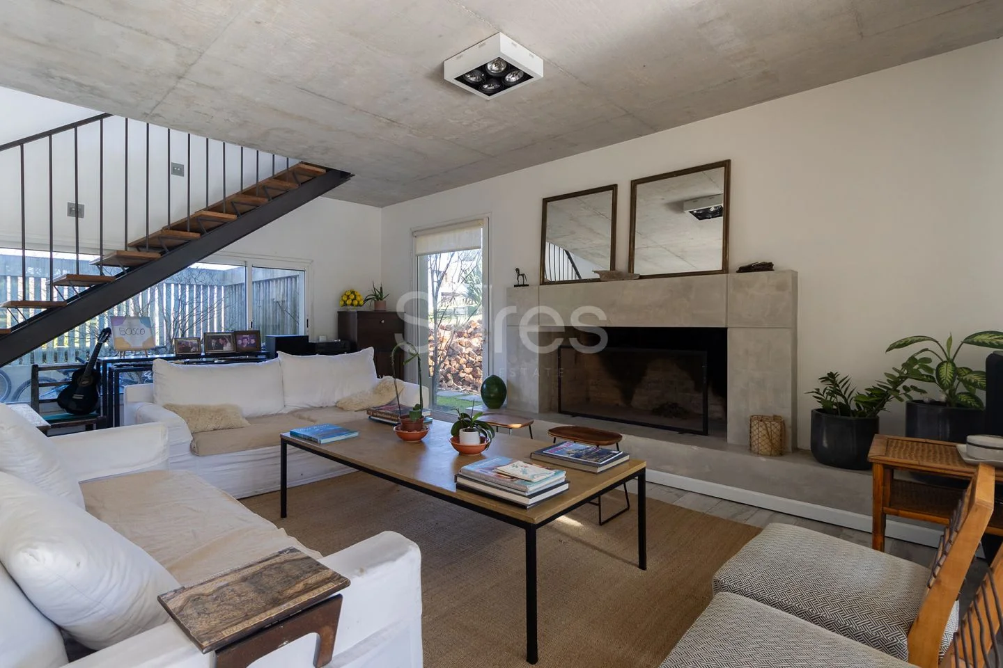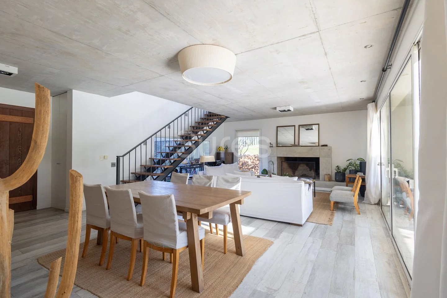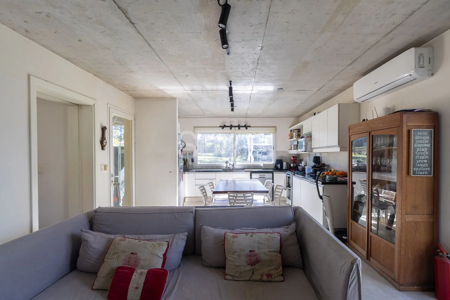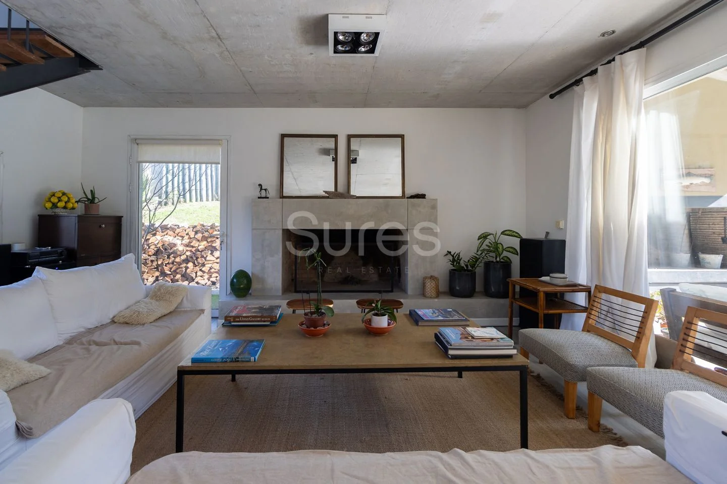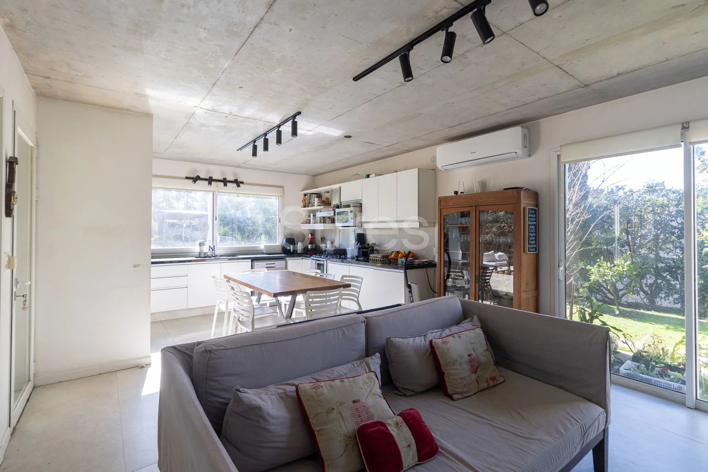 El ingreso principal se da a través de un patio que aporta privacidad a esta casa de amplios ventanales. En planta baja cuenta con un cómodo living-comedor con estufa a leña y toilette social. El estar diario, con estufa de alto rendimiento integrado a una cocina amplia y funcional, con salida directa a la galería con parrillero y un lindismo jardín con piscina orientado todo hacia el Norte.