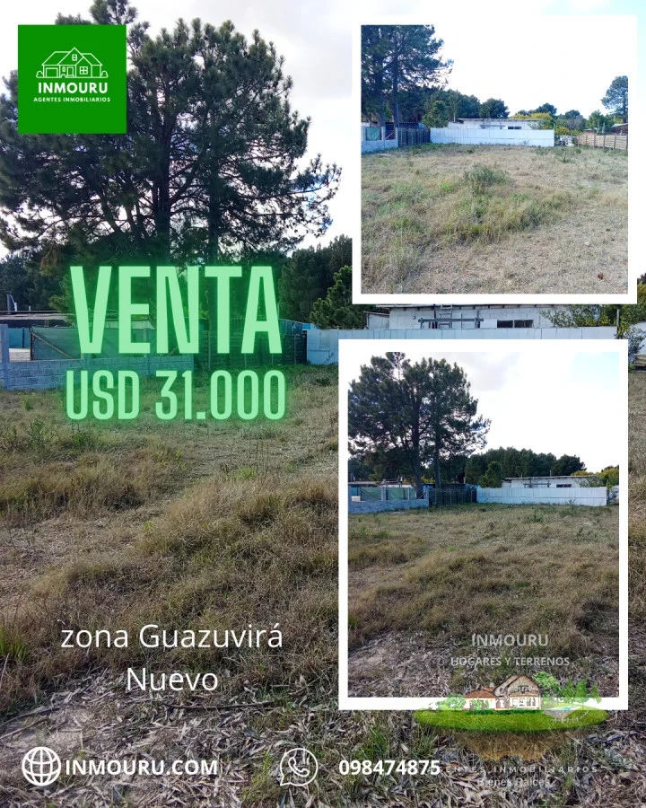 Venta de hermoso terreno nivelado en la zona de Guazuvirá Nuevo Calle 1 y Calle 11 Zona muy tranquila a cuadras de la playa A metros de ferretería Lido Azul, Complejo Las Palmeras Terrenos de 605 metros cuadrados Precio USD 31.000 Honorarios 3% Agente Nazarena Referencia Interna : Tera-1917