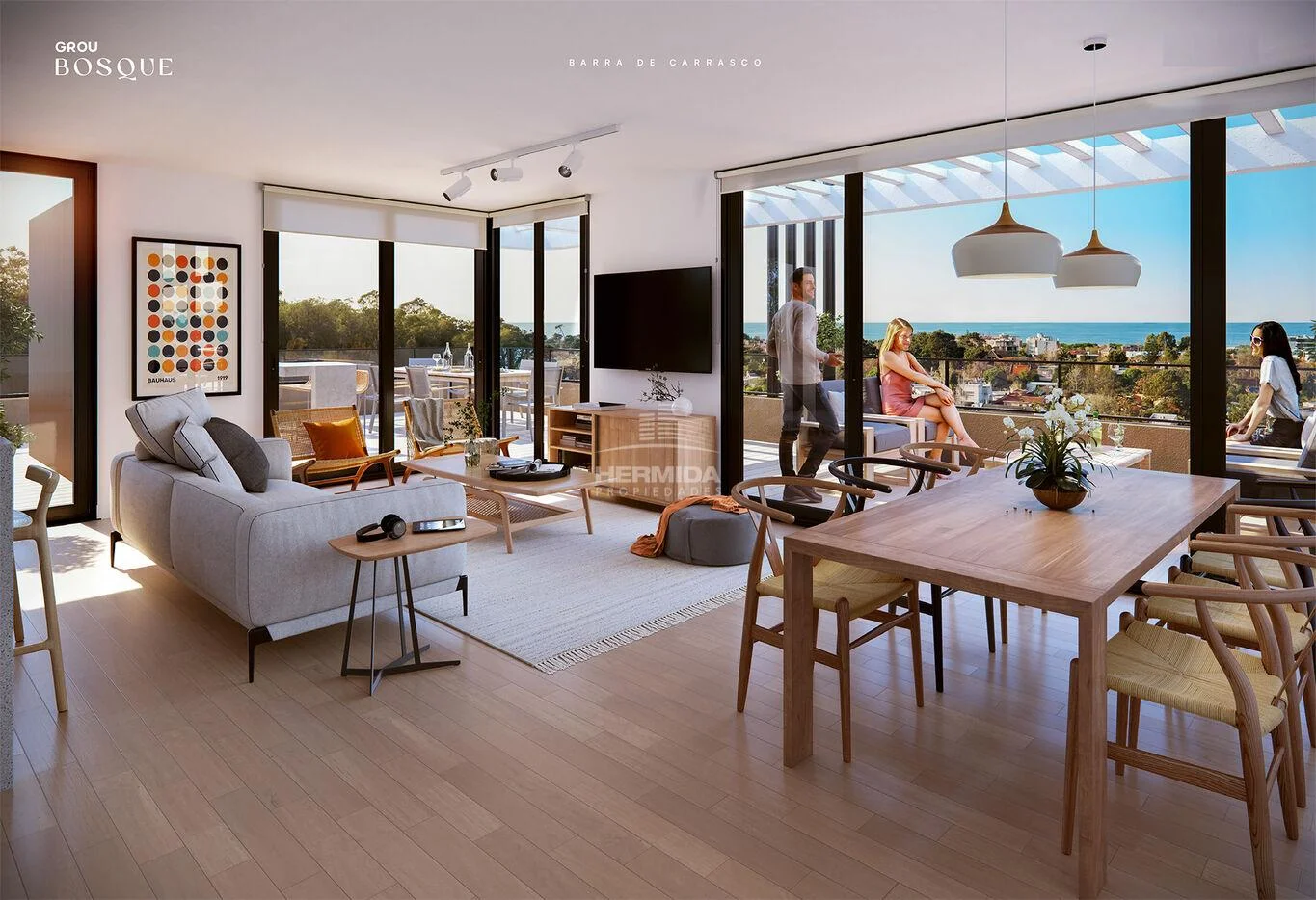 En una ubicación estratégica, a pocas cuadras de la Playa y a pasos del imponente Parque Roosevelt. Un proyecto que ofrece categoría y confort. Con un elevado compromiso con el entorno natural, se construye Grou Bosque. Dos bloques dispuestos en un jardín residencial de 5100 m2, integrados a un diseño moderno, fluido. Dotado de servicios de primer nivel. Barbacoa totalmente equipada - Gimnasio - Co-Work - Piscina - Solarium - Parque verde y paisajismo - Juegos para los mas chicos
