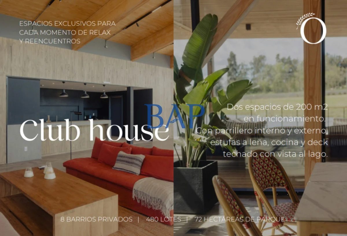* Club House con parrillero y vista al lago.