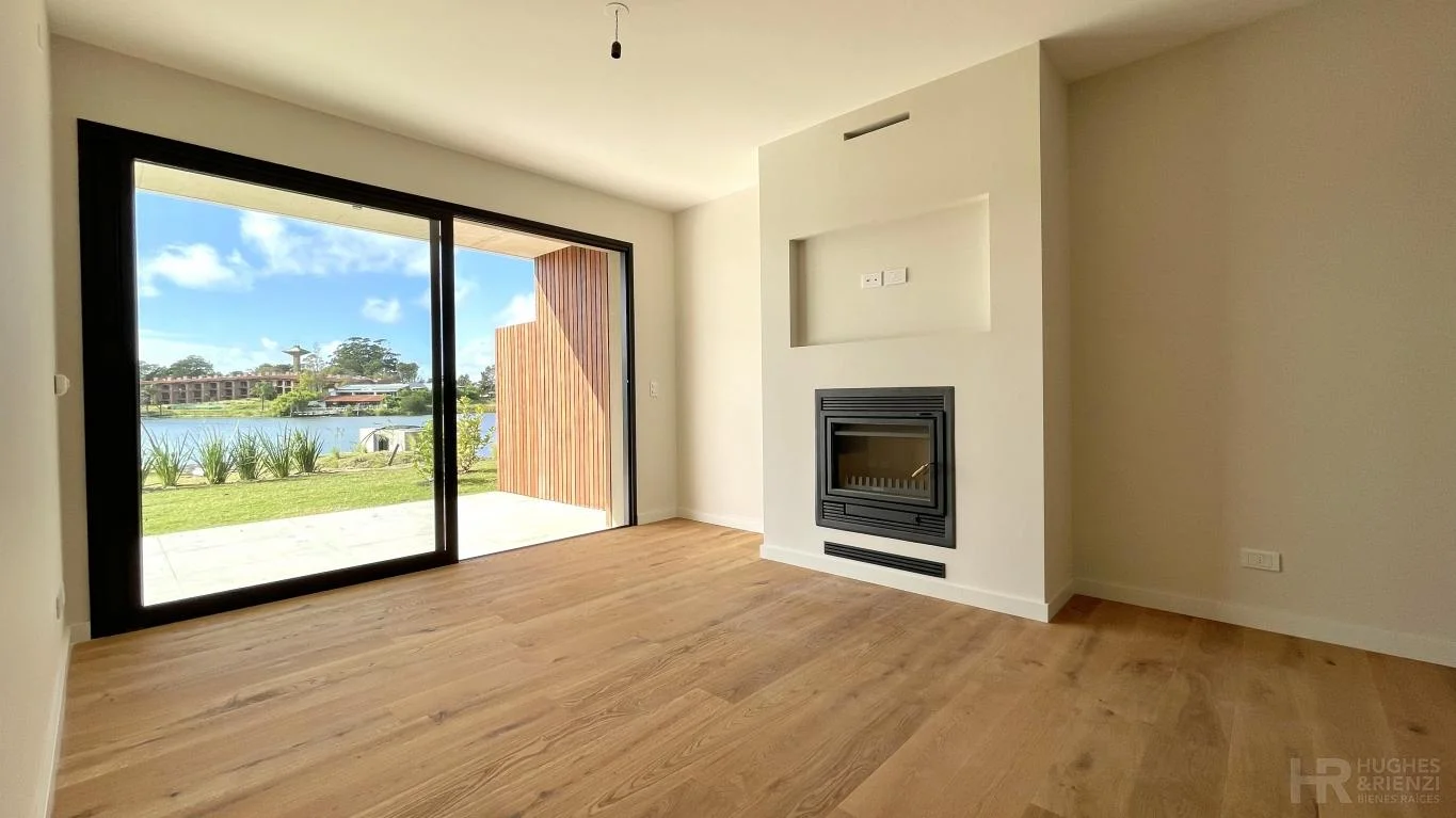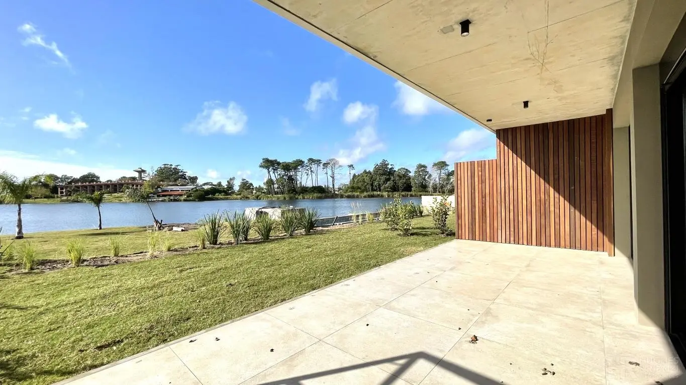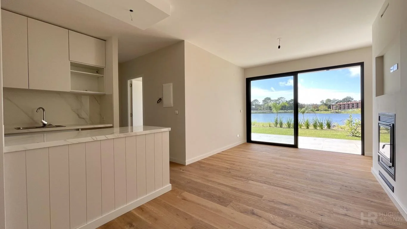 Vilago Lake Homes. Divino apartamento sobre el lago con jardín de uso exclusivo! DISPONIBLE A PARTIR DE NOVIEMBRE. Living-comedor con estufa a leña, cocina integrada y salida a terraza con parrillero y jardín. Baño social. Dos dormitorios, principal en suite con vestidor. Todos los ambientes con vista al lago. Calefacción por losa radiante eléctrica. Cocina equipada con línea blanca. Cochera doble y box. Seguridad 24hs. Piscina con solárium, muelle y playa sobre el lago. Barbacoa, gimnasios rodeados de áreas verdes.