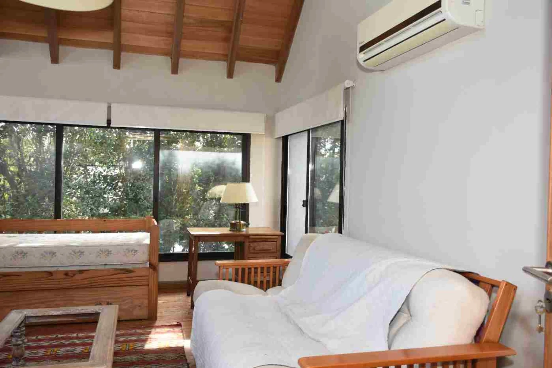 La habitación principal cuenta con vestidor, altillo y baño en suite, brindando un espacio de intimidad y confort.