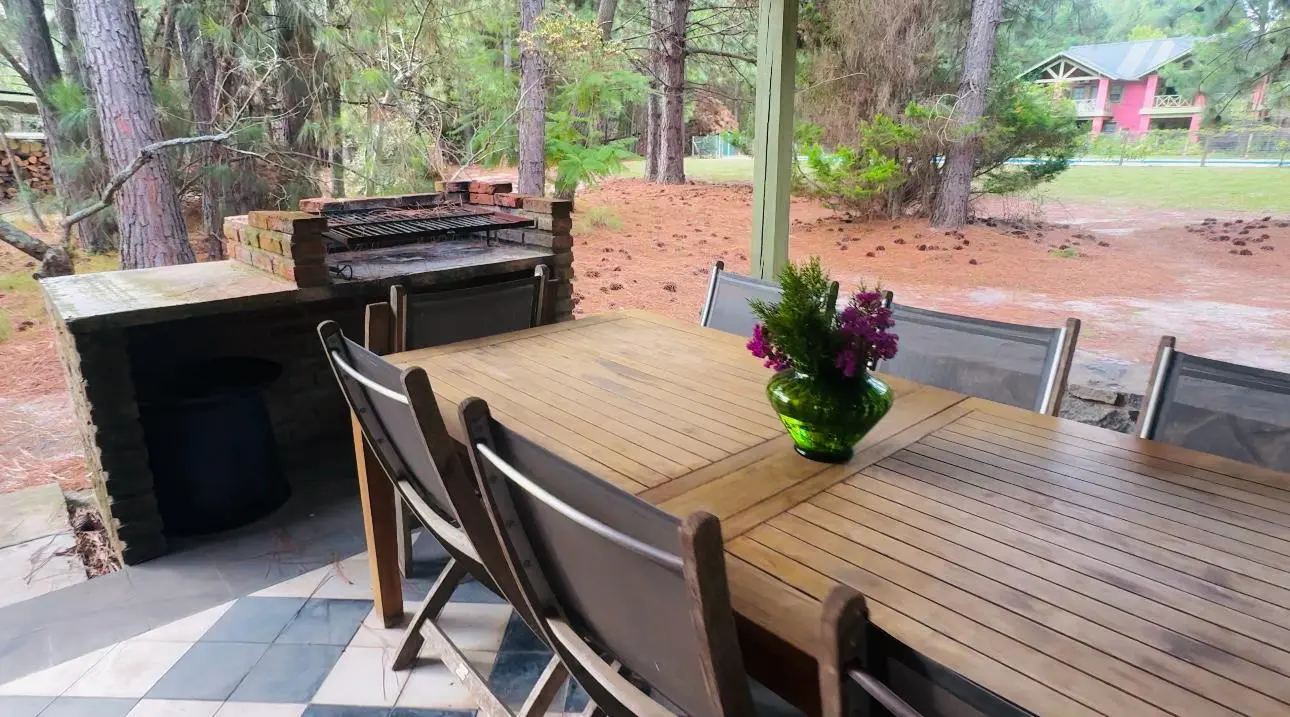 La propiedad cuenta con dos dormitorios en suite, una cocina totalmente equipada, y un comedor y living separados, todo diseñado para brindar una experiencia de vida cómoda y acogedora. Además, dispone de cochera, parrilla a leña, horno de barro y amplias galerías semi cubiertas que permiten disfrutar del aire libre en cualquier momento.