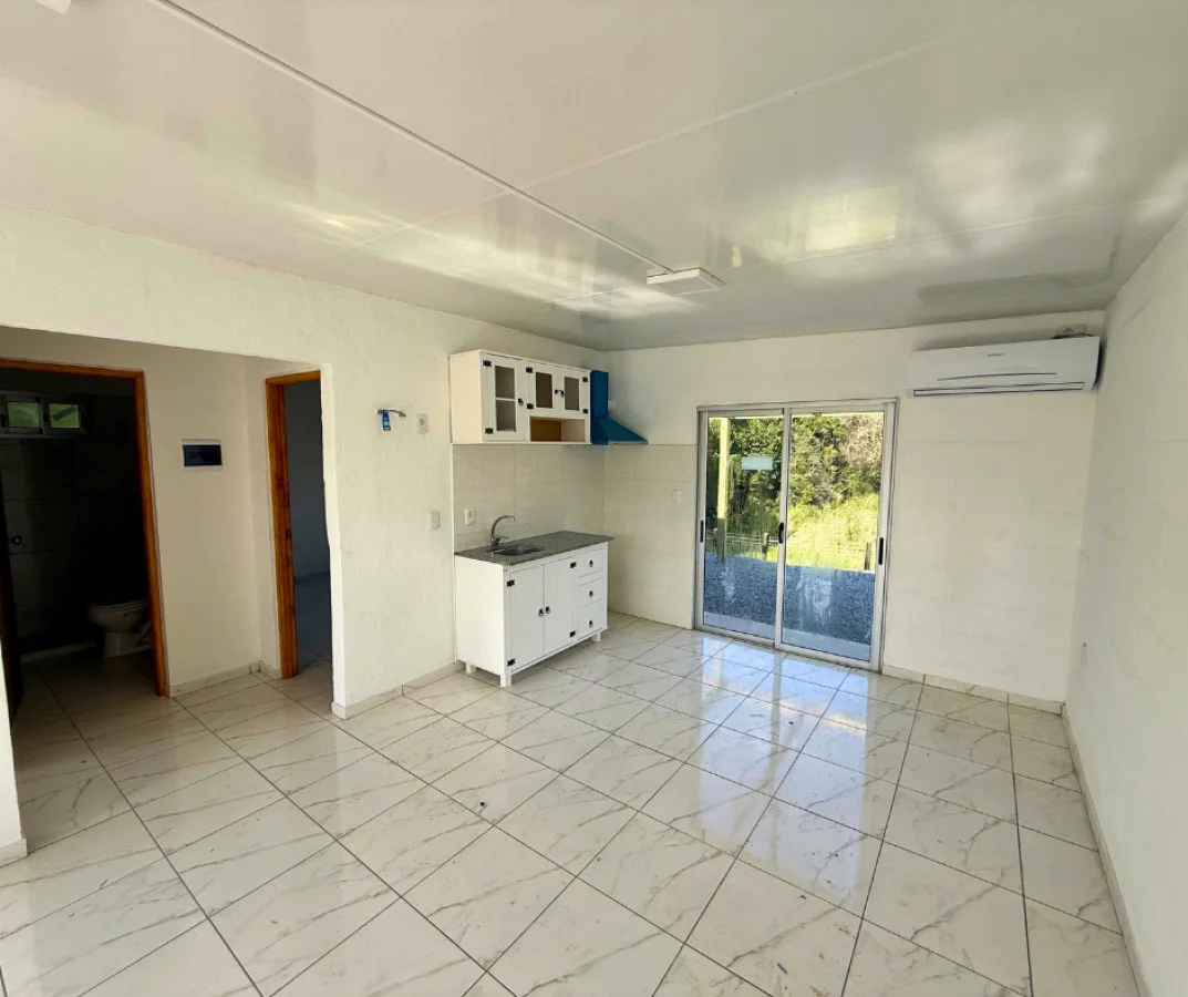 Concepto abierto: living + comedor + cocina equipada