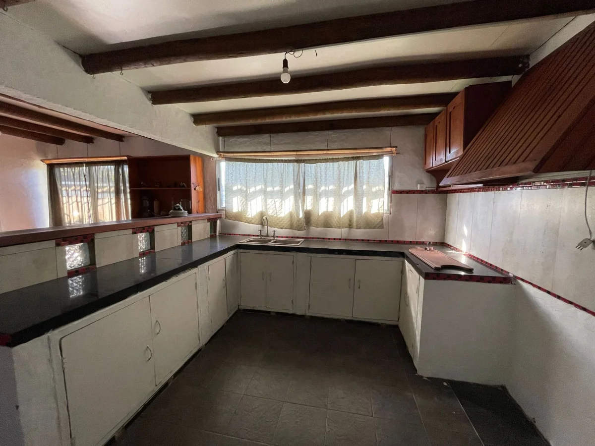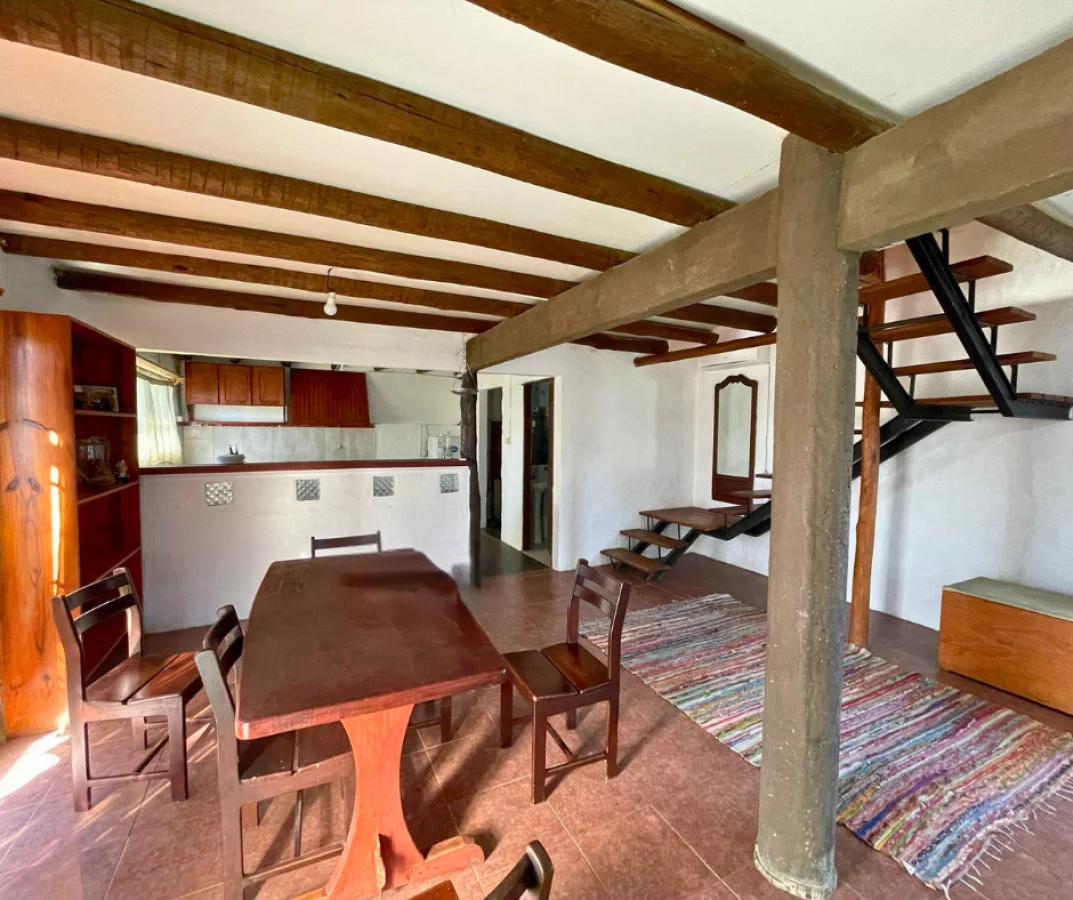 La casa cuenta con 4 dormitorios, baño completo, living espacioso con estufa a leña, y una cocina definida con muebles a medida. La barra divisoria de dos niveles entre cocina y living aporta un toque moderno y práctico.