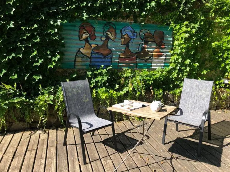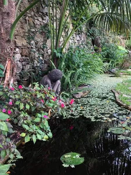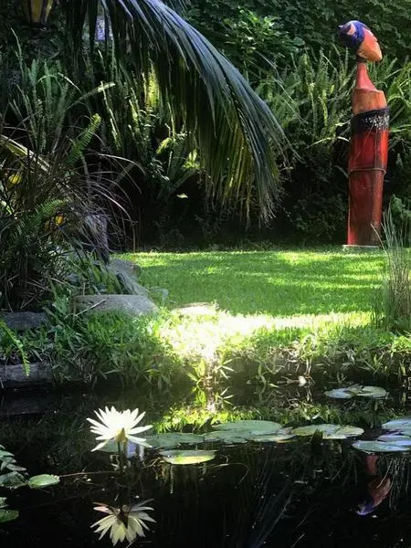 Hacia el exterior, se destaca un amplio jardín con diseño arquitectónico, deck de madera y estanque, generando un entorno íntimo y muy disfrutable, ideal para propuestas gastronómicas, culturales o de alojamiento boutique.