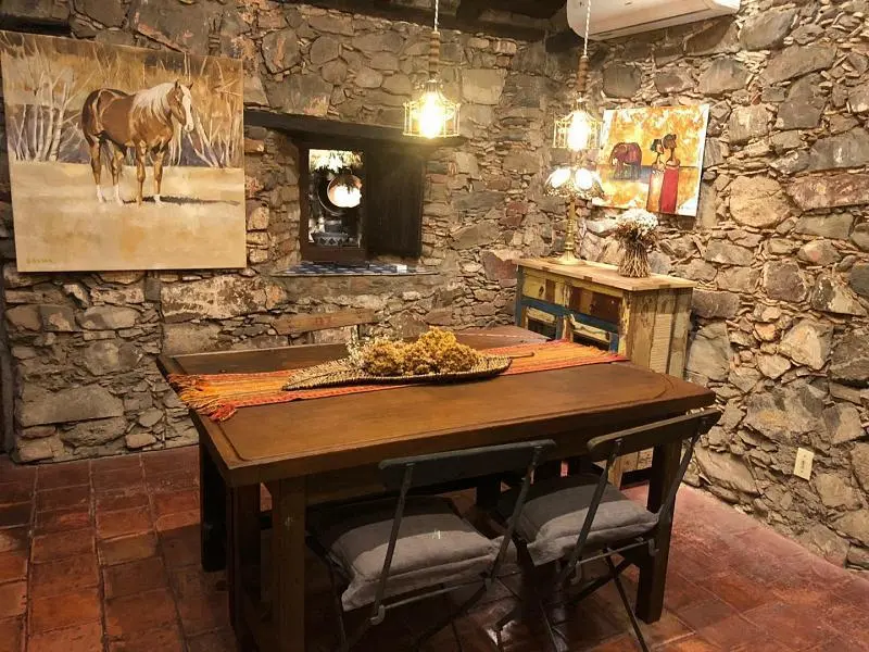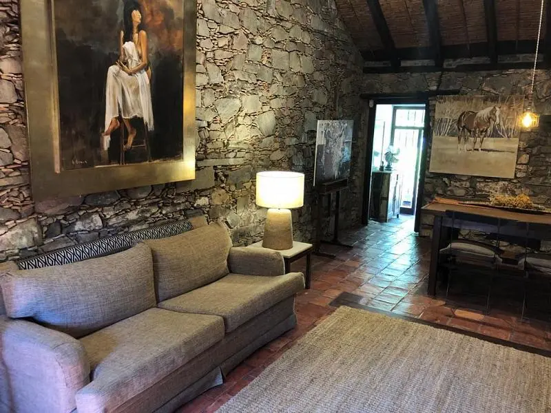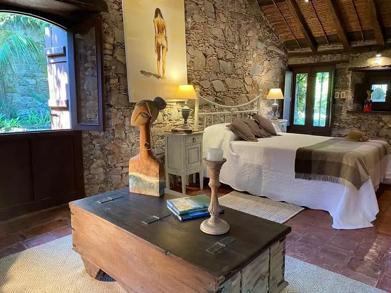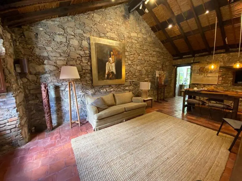 Se trata de un auténtico rancho portugués cuidadosamente restaurado, que conserva su esencia original con muros portantes de piedra y ladrillo, y techo de tejas coloniales sobre estructura tradicional de madera, caña y tiento.