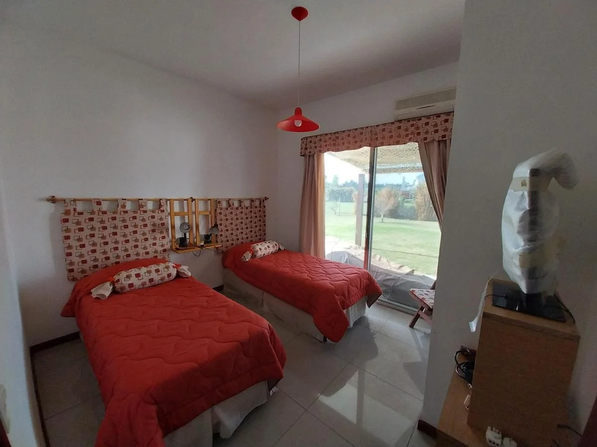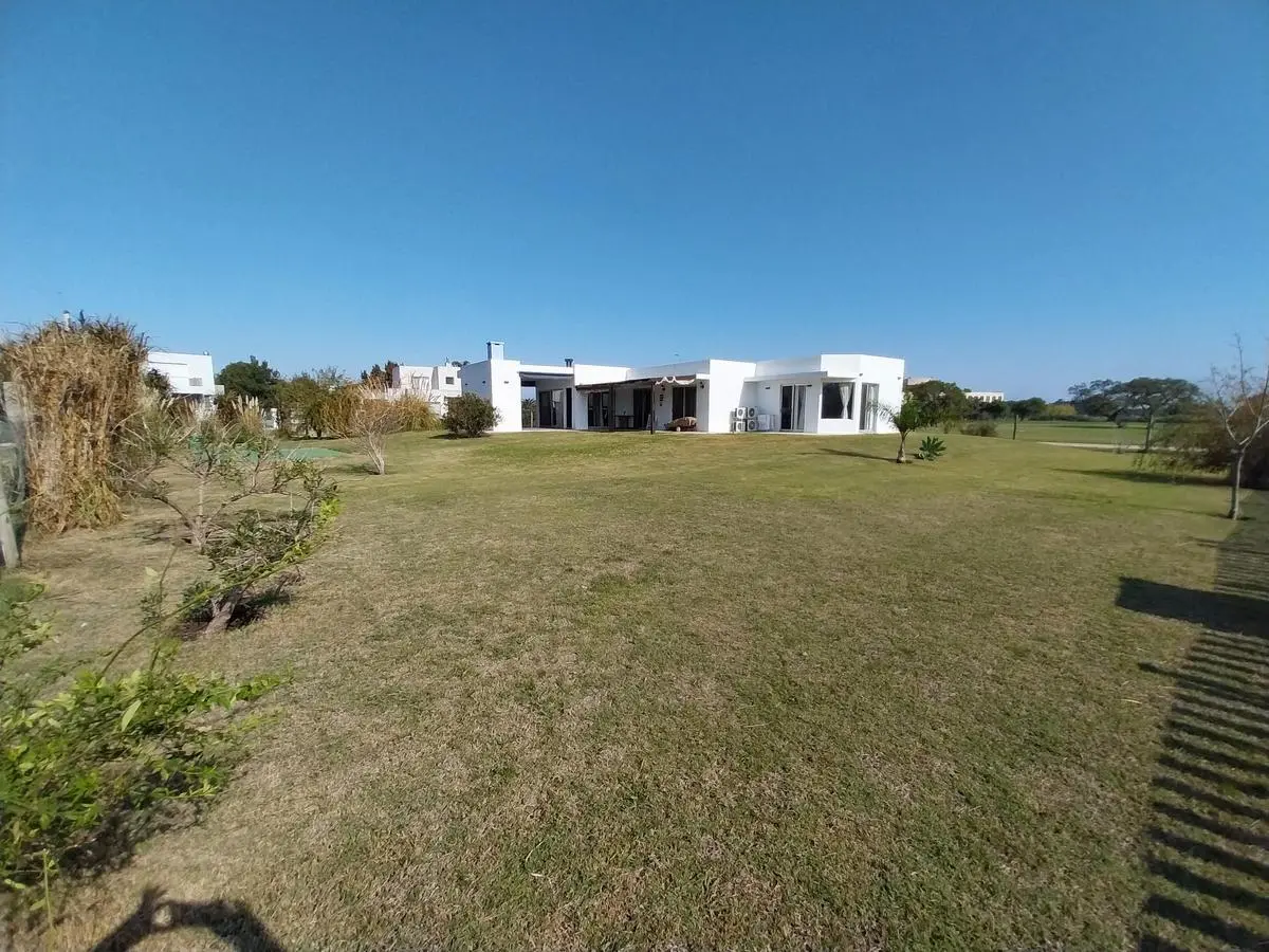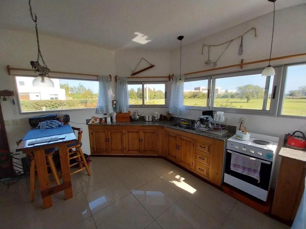 Se desarrolla en una planta (lo que la hace ideal para todo tipo de inquilinos), posee acceso principal , pero generalmente se accede por la puerta que comunica al parrillero techado que oficia a su vez de cochera , con el living comedor. Cuenta con tres dormitorios , uno de ellos en suite, y cada uno tiene aire acondicionado y acceso individual a la galería techada y jardín , 2 baños completos, y amplia cocina integrada a la living con buenas visitas la "zona verde de reserva" del Barrio.