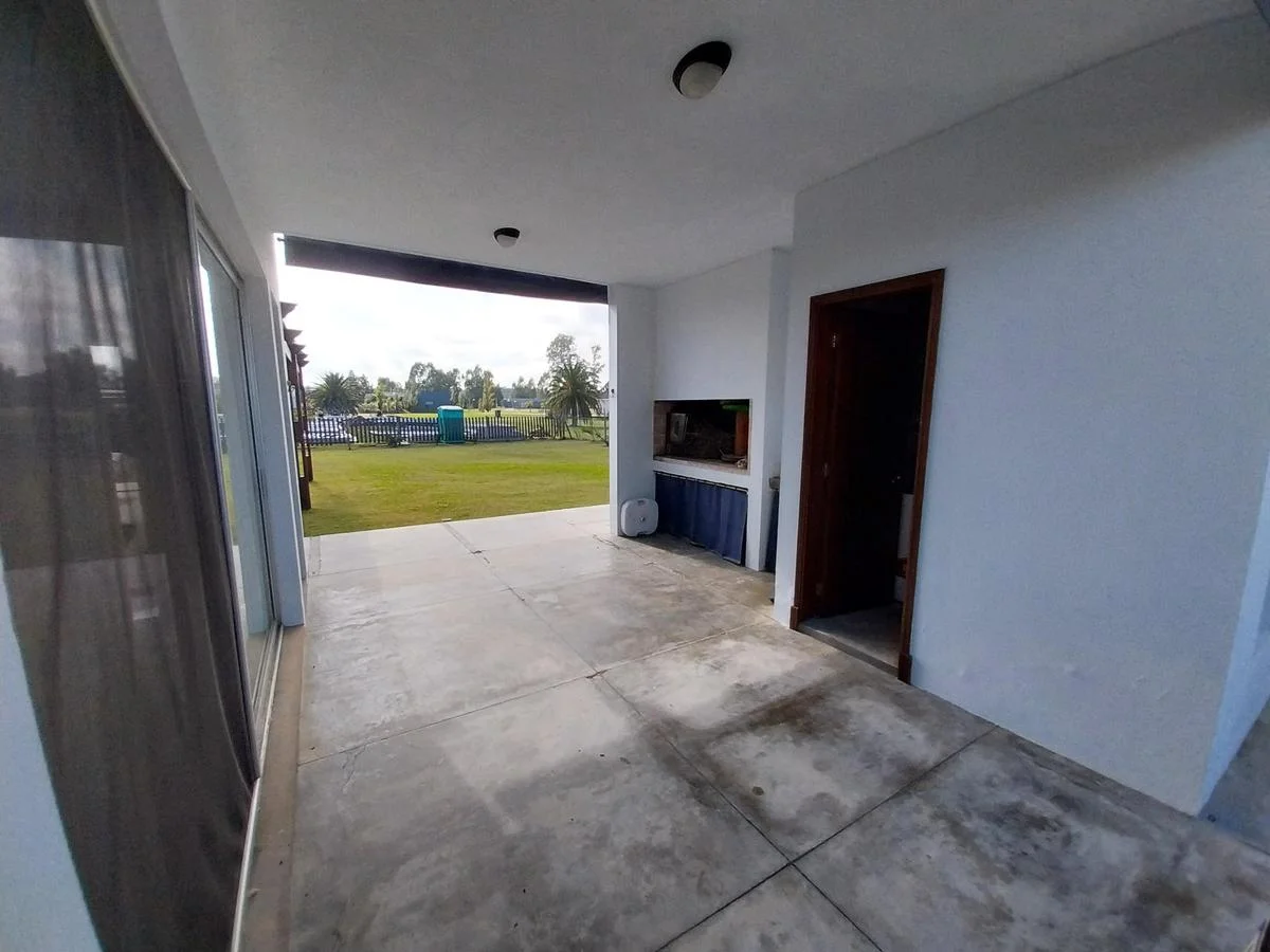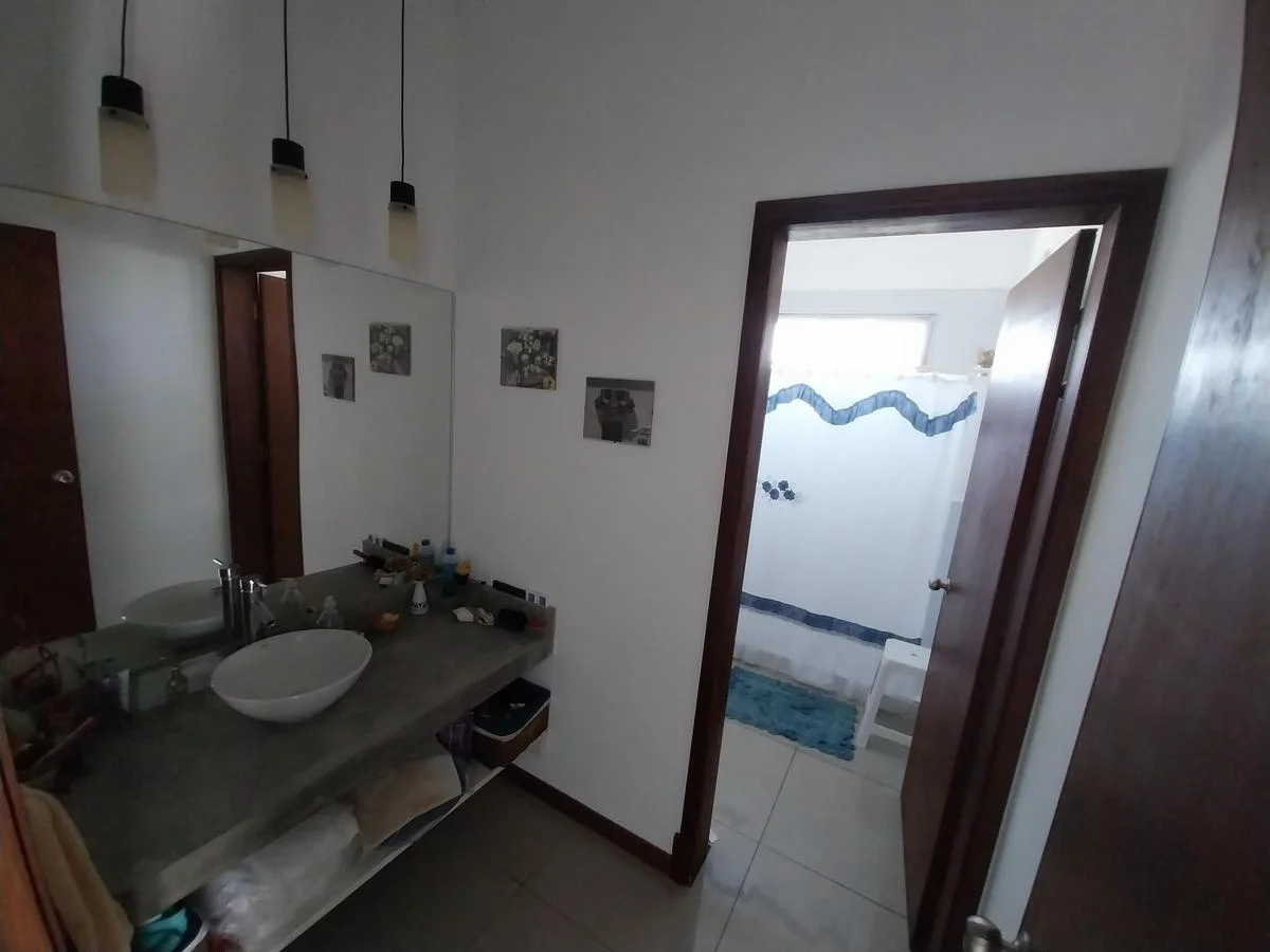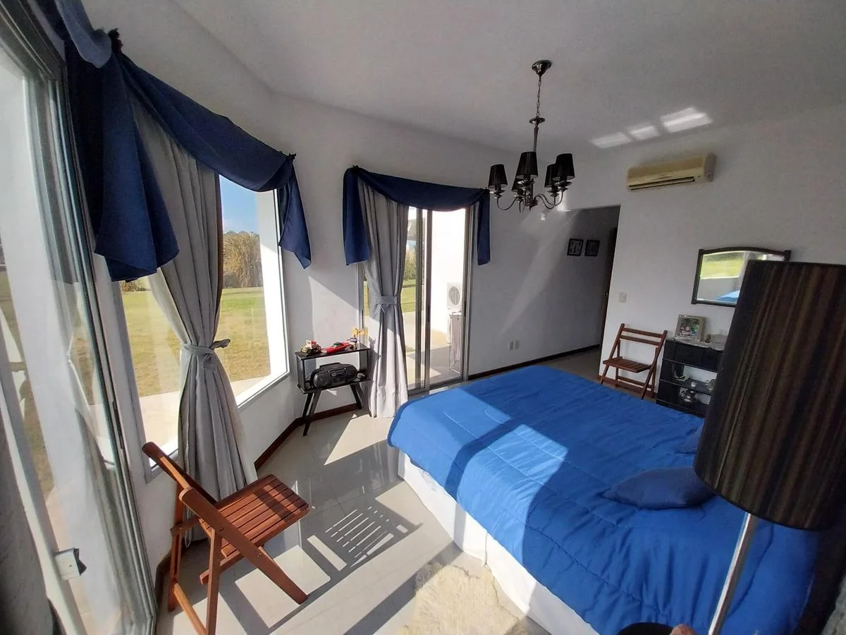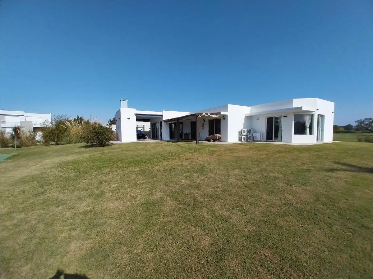 Se desarrolla en una planta (lo que la hace ideal para todo tipo de inquilinos), posee acceso principal , pero generalmente se accede por la puerta que comunica al parrillero techado que oficia a su vez de cochera , con el living comedor. Cuenta con tres dormitorios , uno de ellos en suite, y cada uno tiene aire acondicionado y acceso individual a la galería techada y jardín , 2 baños completos, y amplia cocina integrada a la living con buenas visitas la "zona verde de reserva" del Barrio.