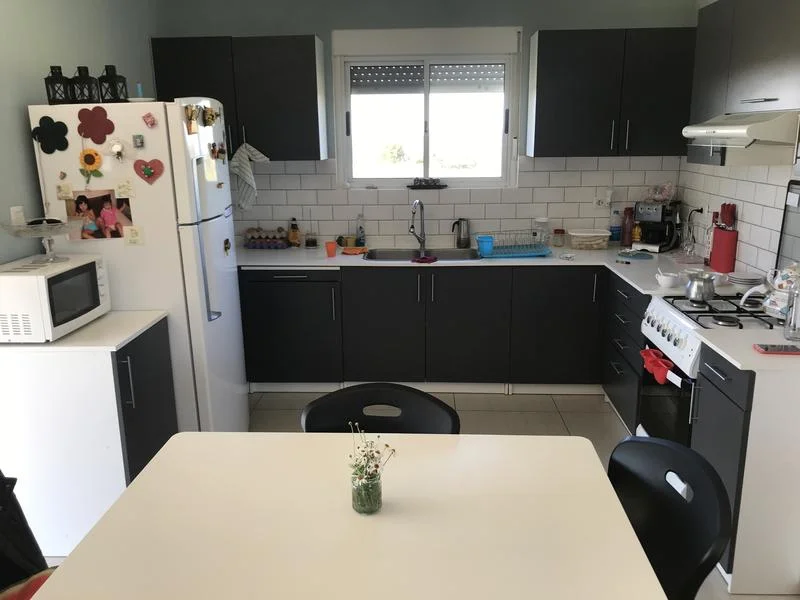 Buena y sencilla distribución en una planta, con 2 dormitorios, living comedor con estufa a leña, cocina integrada , baño completo y muy cómodo lavadero equipado.