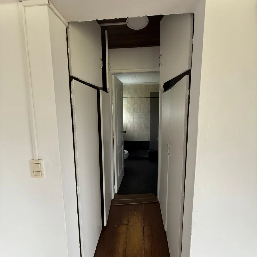 Dormitorio principal con muebles empotrados y recibidor hacia el baño