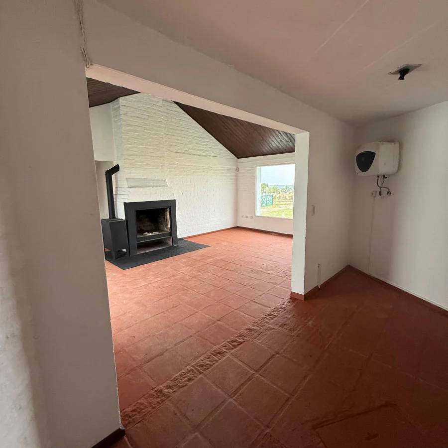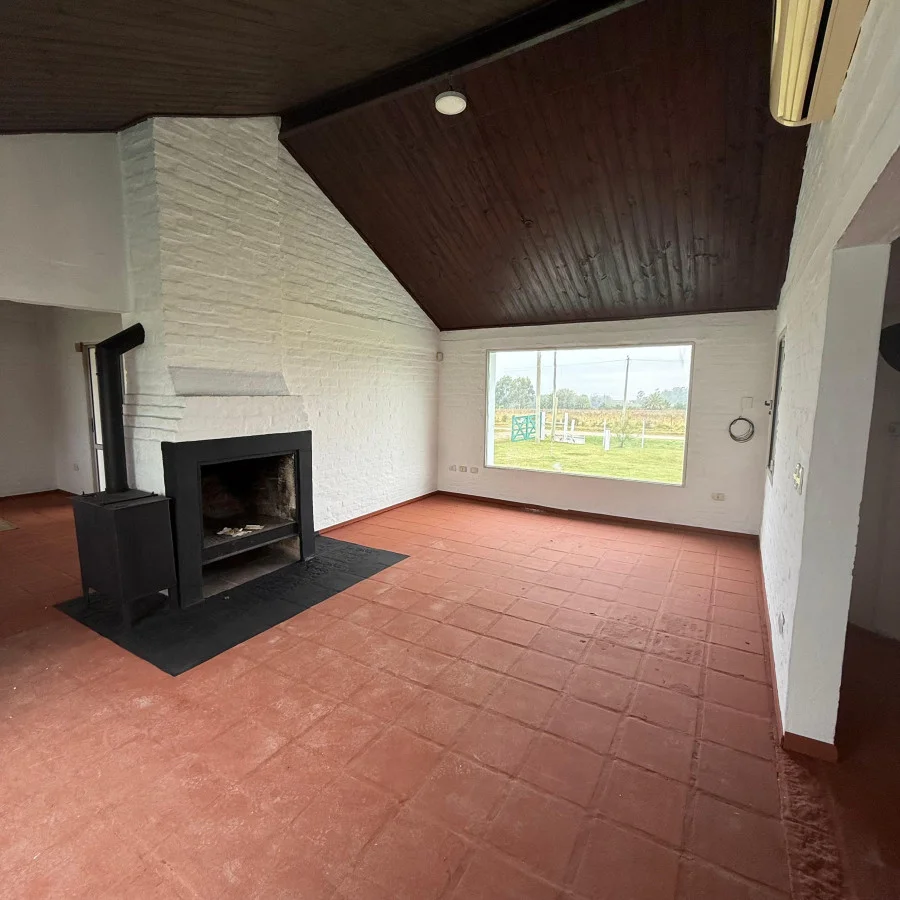 Living amplio con estufa a leña, ideal para disfrutar en invierno