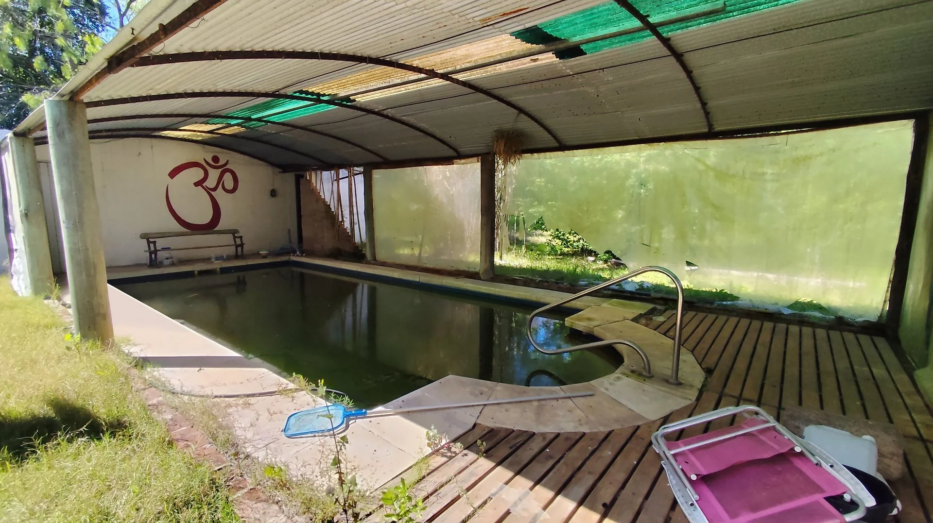 Área Wellness: Piscina techada de 8 x 2.5 m con estructura en buen estado, vestidores y baños.