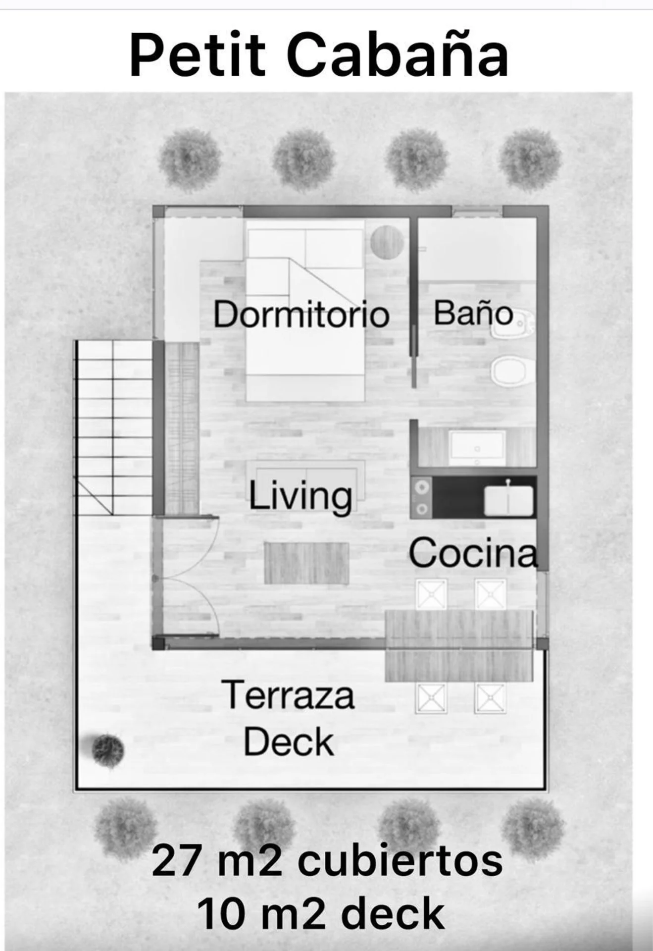 La cabaña, desarrollada en una planta cuenta con: