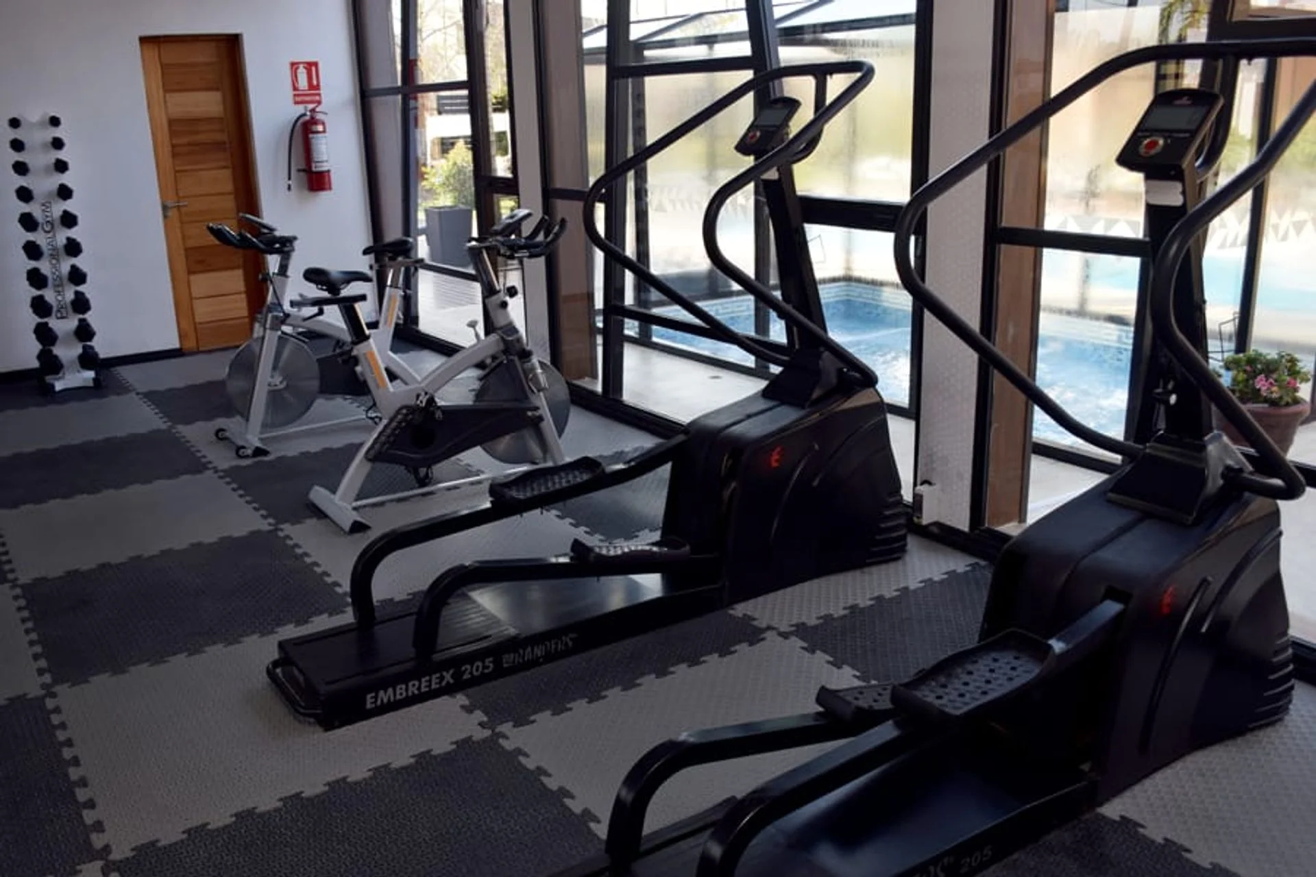 Jacuzzi exterior, piscina, solárium y gimnasio