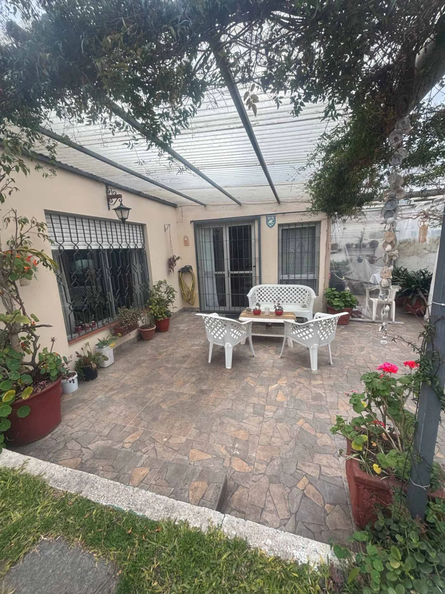 Su barbacoa techada es ideal para reuniones familiares y de amigos durante todo el año, mientras que el hermoso jardín ofrece un entorno verde y relajante para disfrutar al aire libre.