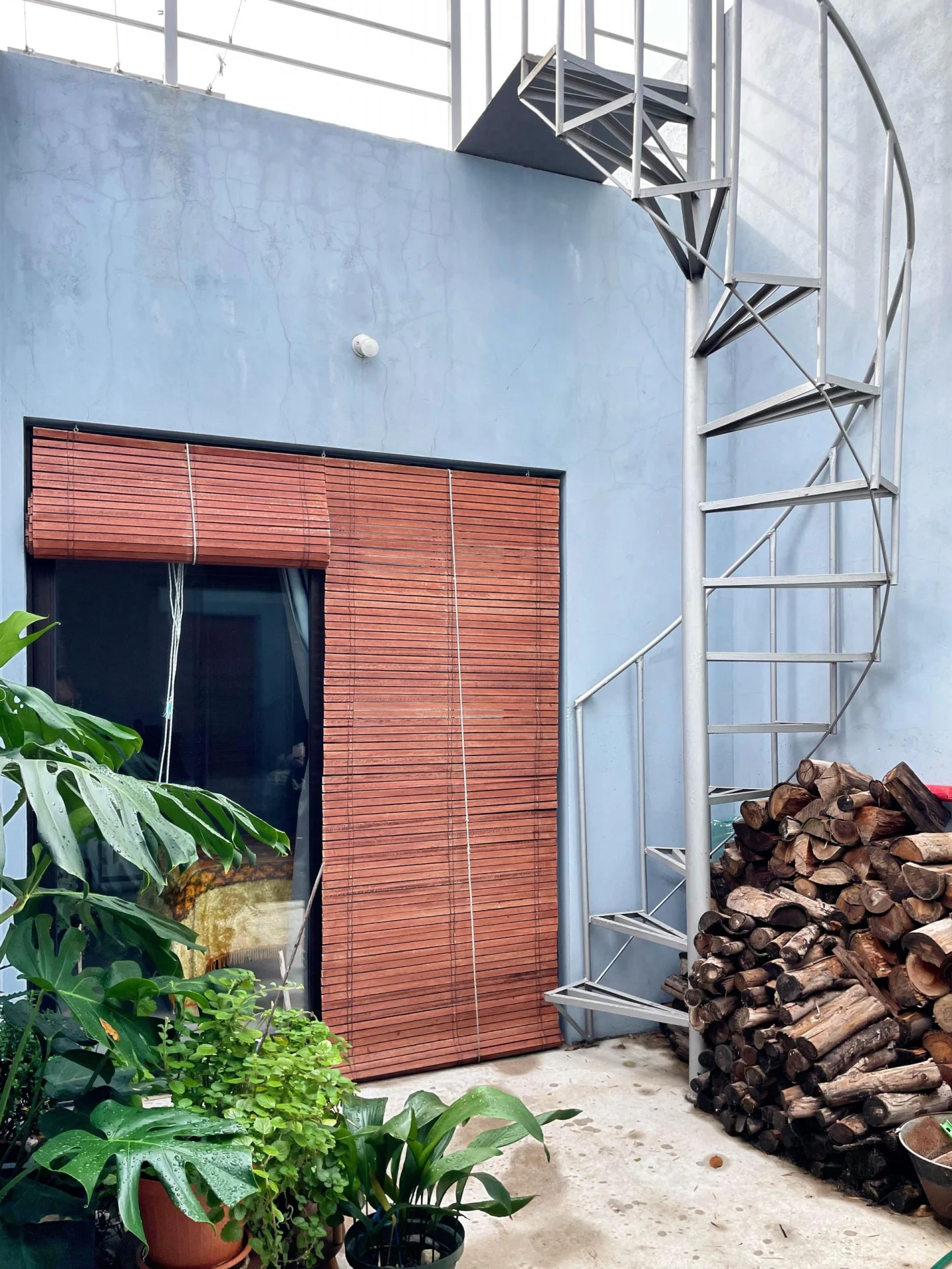 Patio pequeño con escalera cómoda hacia azotea transitable.