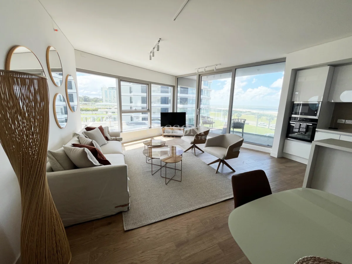 Con una superficie de 160 metros, este departamento ofrece 2 dormitorios en suite más toilette. Cocina integrada al amplio living comedor con una hermosa vista a la playa Brava. Area de Servicio, y balcón. Aire acondicionado central.
