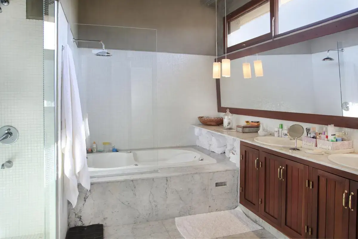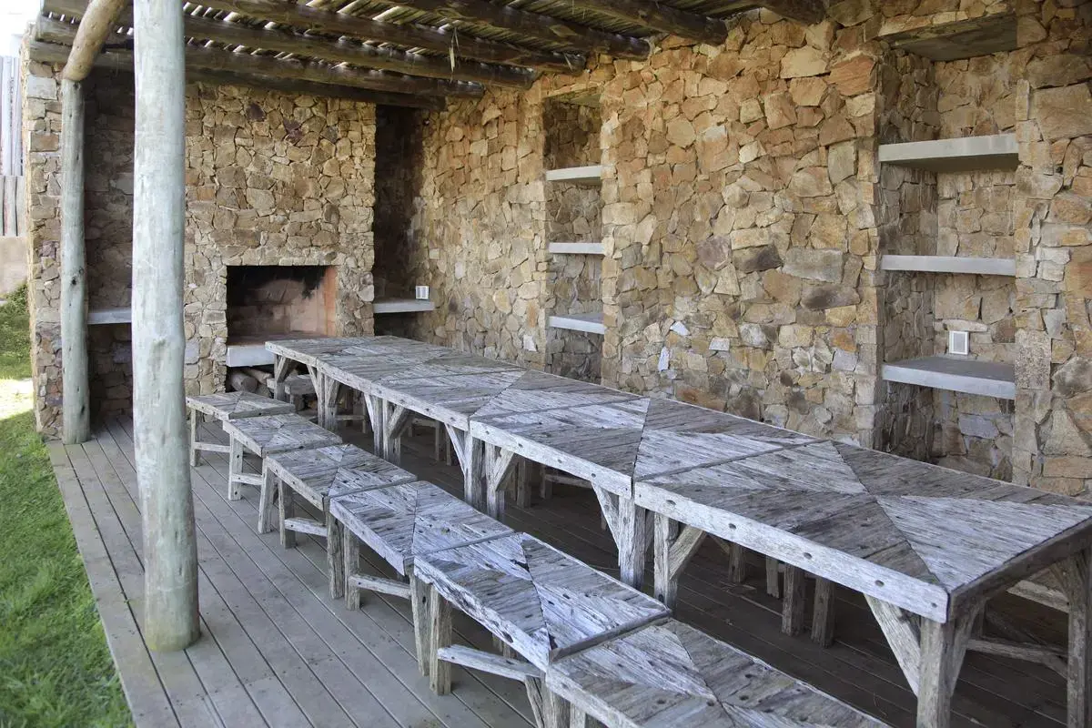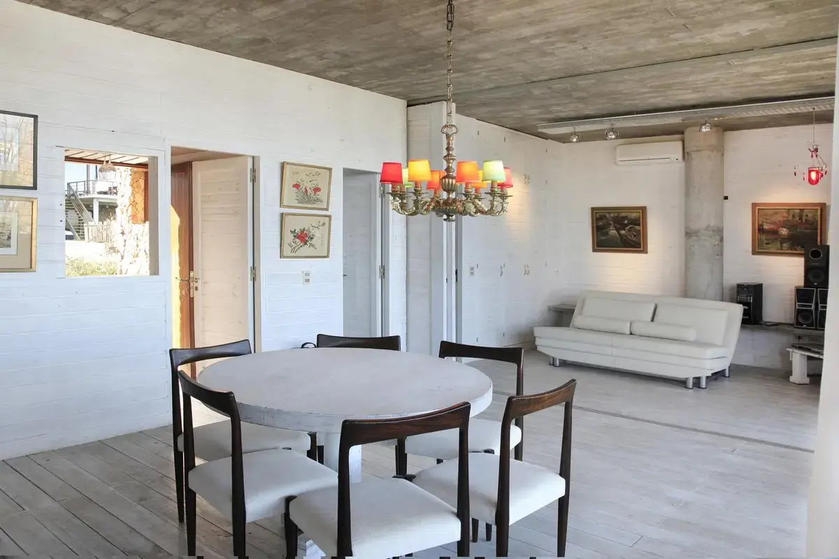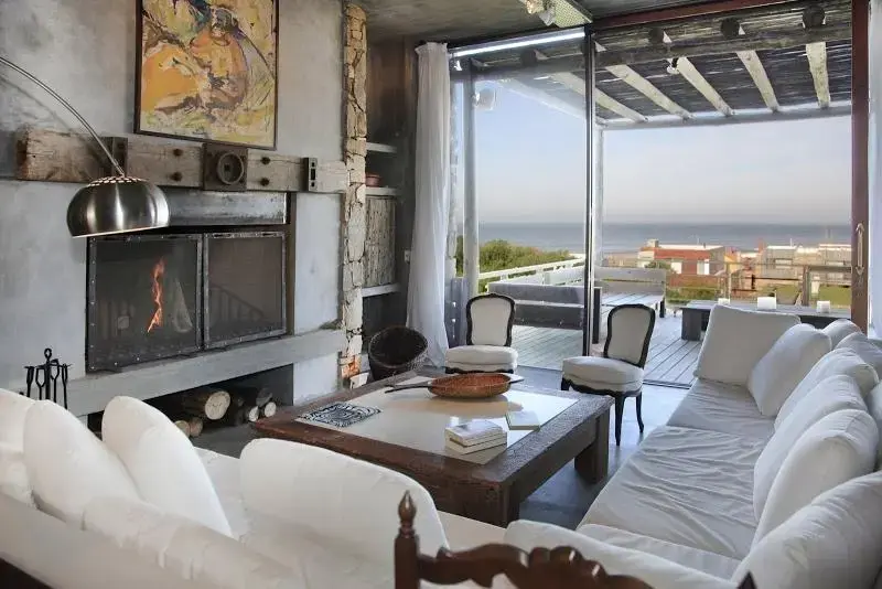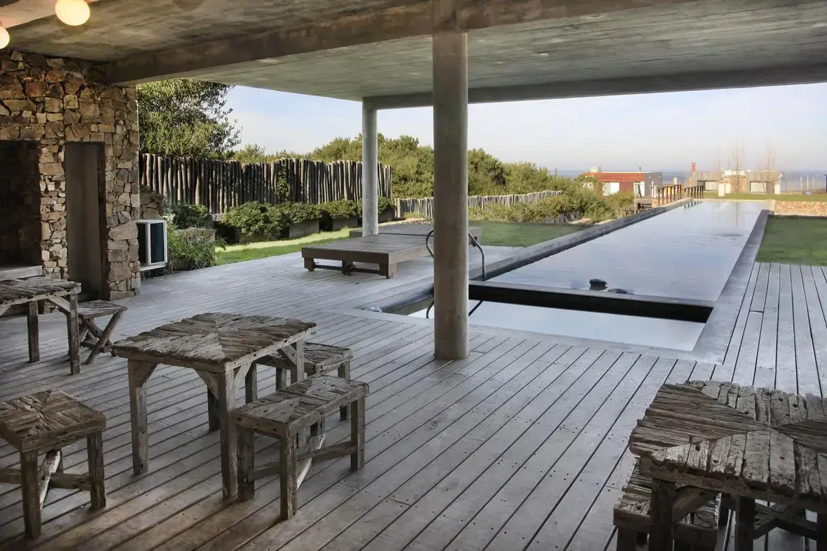 En esta casa de lineas contemporaneas diseñada por el reconocido Arq.Horacio Ravazzani,se maneja con exquisito gusto la luz y forma,utilizando materiales como piedra local ,acero,vidrio,aluminio y distintas maderas.Generosa recepcion,que abre con grandes puertas ventanas a un deck.El living y comedor contiene un balance de elementos rusticos y de estilo.Arriba la suite principal,con su gran vestidor tiene una espectacular vista al mar. Abajo,tiene un gym,sauna, la bodega y una pequeña sala de cine.Se abre a un deck donde esta el parrillero y toda la zona de la piscina. Separada por el jardin,brindando mucha privacidad,esta la segunda casa que tiene dos dormitorios y dos baños. Garage doble,y caseros que permanecen en la casa. Adjuntas 3 unidades cuya sumatoria en total son 11 dormitorios en un mismo dominio, las cuales se alquilan cada una por separado sumando al monto de la sede sus respectivos valores.
