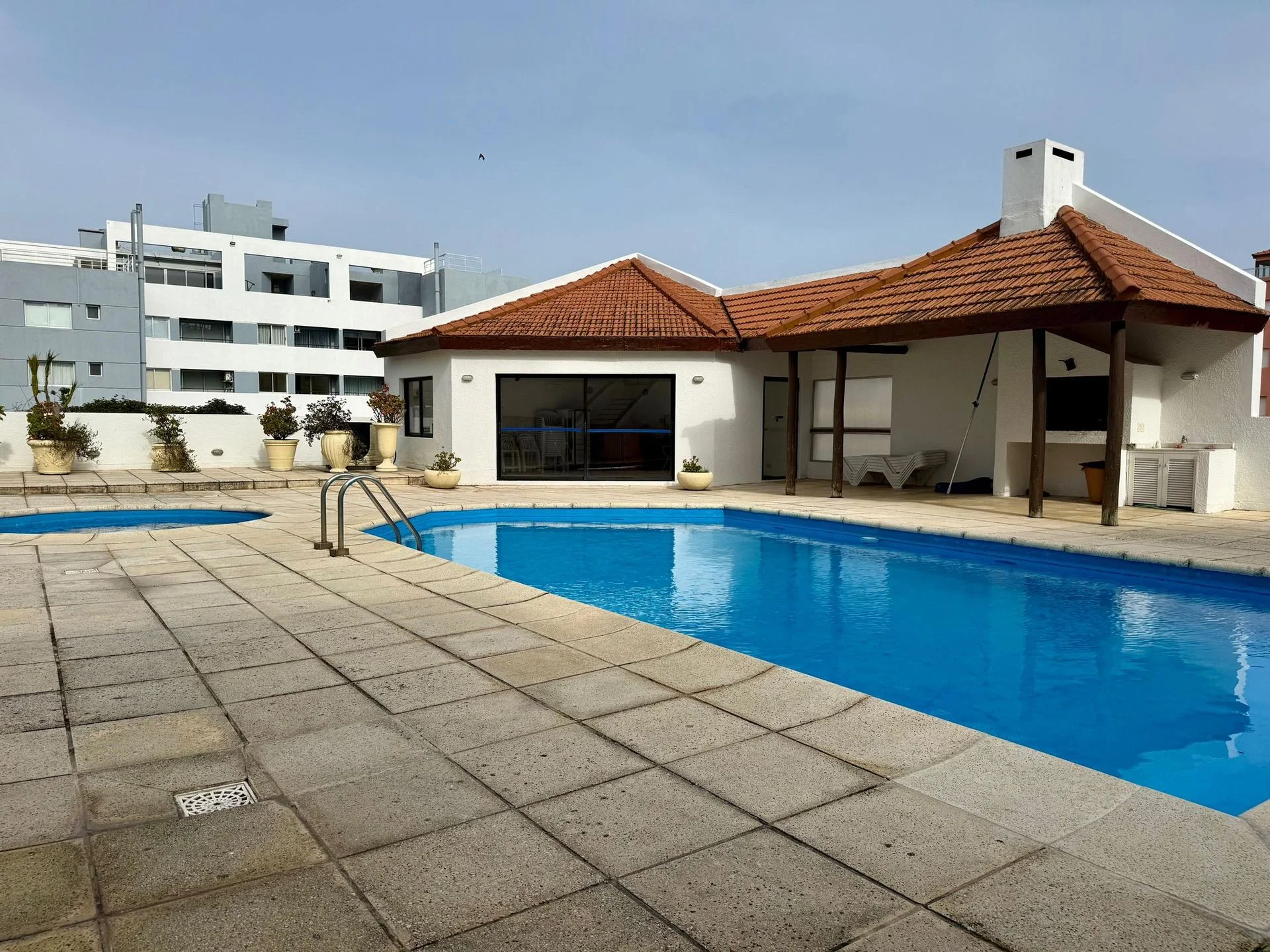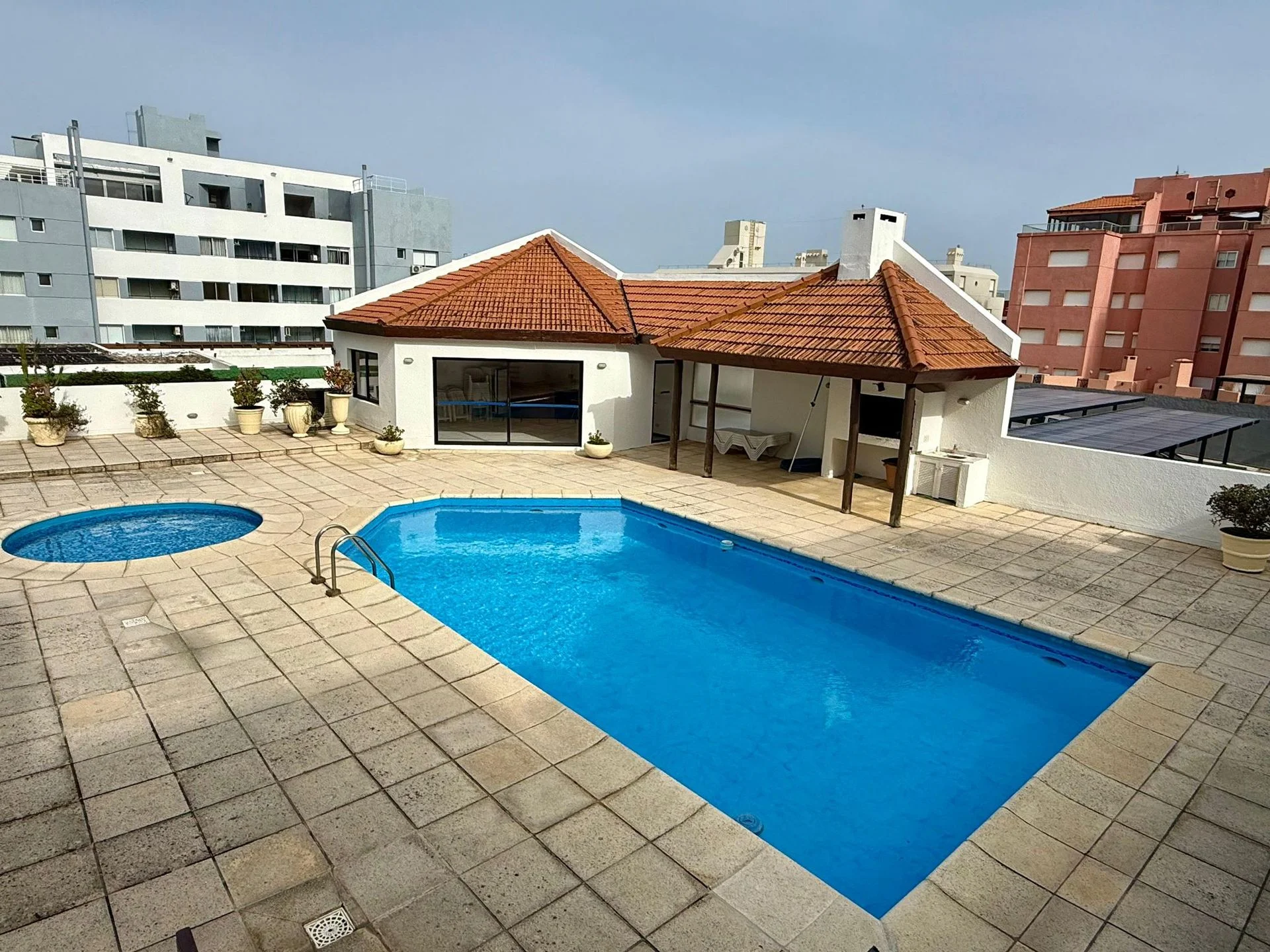 El edificio ofrece amenities como piscina exterior climatizada, sauna, parrilla y servicio de portería y mucama 3 veces por semana, además de un pequeño GYM, brindando comodidad y seguridad a los inquilinos.