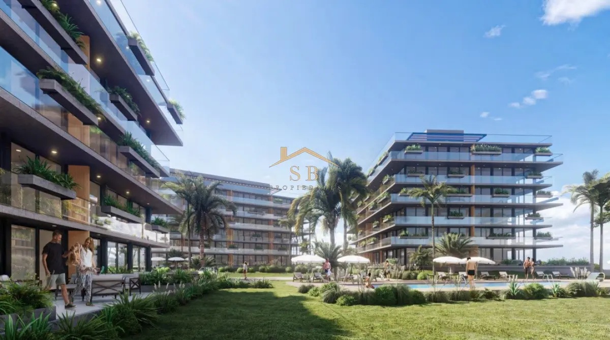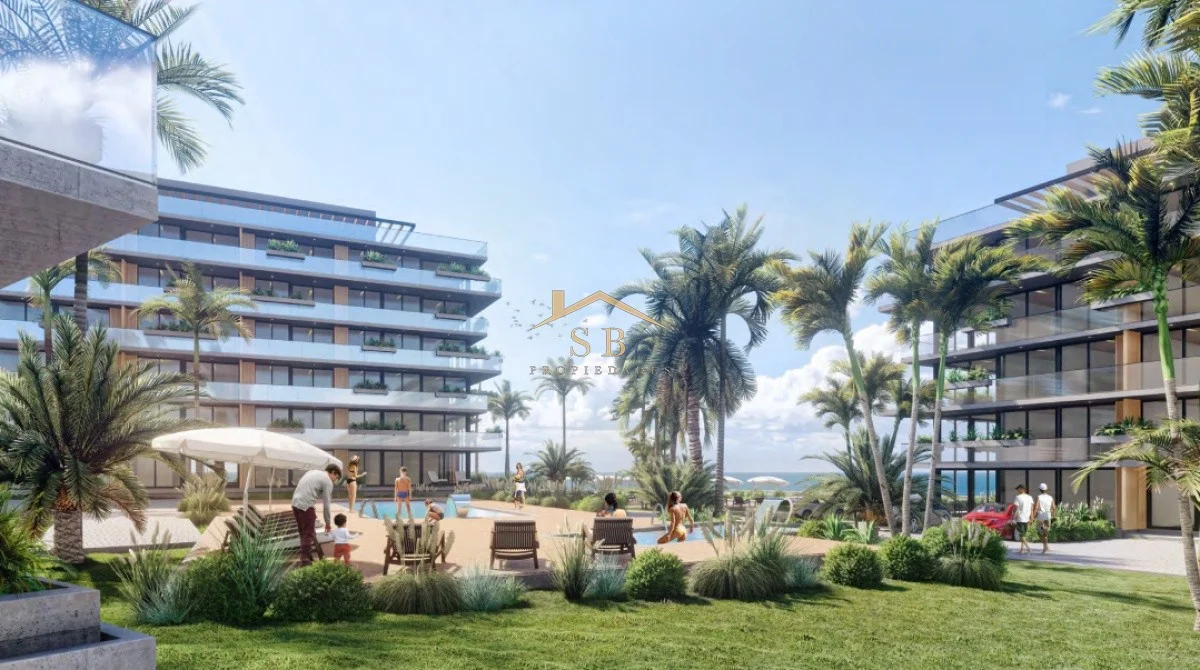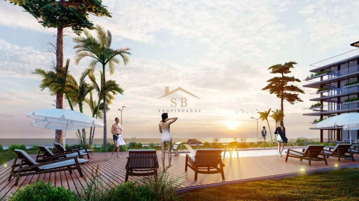 3 torres de 5 pisos, organizadas de tal forma que miren hacia la línea de mar o en contrafrente. Entre las mismas se genera un gran patio con 3 piscinas climatizadas, 2 para adultos y una para niños, acompañado de un hermoso espacio verde. Hacia la costa no hay dunas, por lo que podrás disfrutar desde PB de las hermosas vistas al mar que solo podrás ver en Punta del Este.