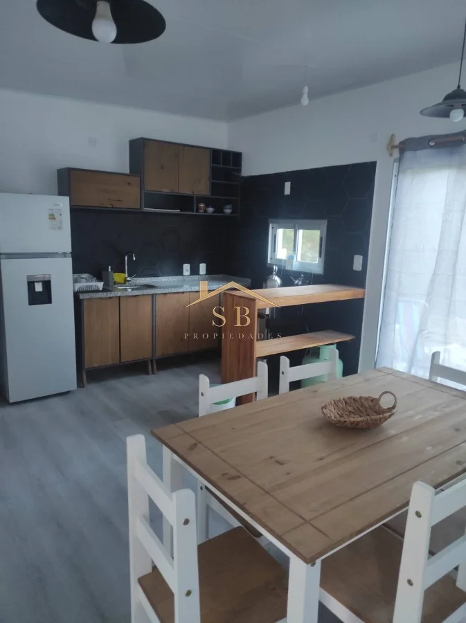 Casa en alquiler anual o temporal en Barra verde, lugar super tranquilo rodeado de montes y a pocos minutos de todos los servicios. 80m2 + 20m2 de pérgola techada, dos dormitorios y dos baños completos uno en suite. Cada habitación posee cama de dos plazas. Living-Cocina integrados, estufa de alto rendimiento, amplios ventanales. Cocina equipada y amplio parque con parrillero techado. No dude en consultar. Referencia Interna : Tera-84