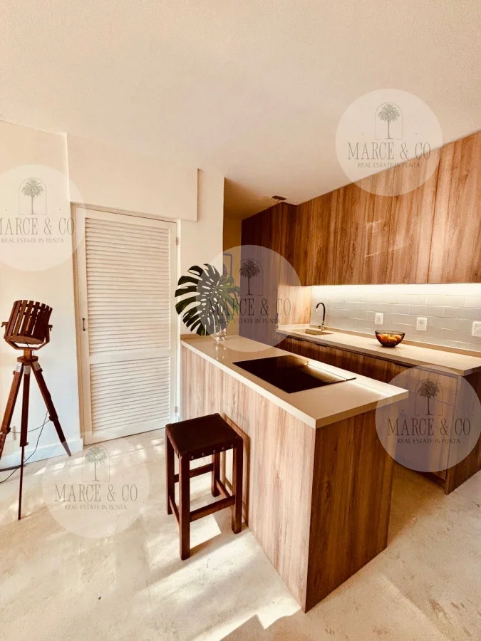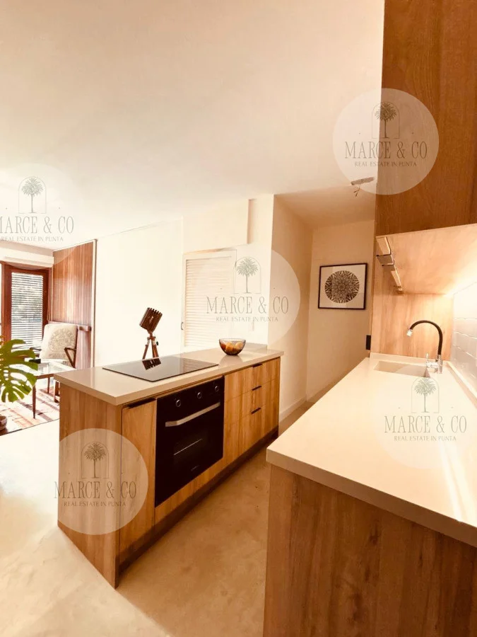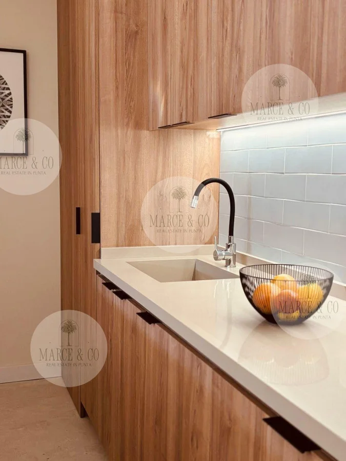 Con una cocina americana que se integra perfectamente al living comedor, este ambiente abierto ofrece una sensación de amplitud y calidez. Con distribución inteligente de los espacios que maximiza cada rincón.