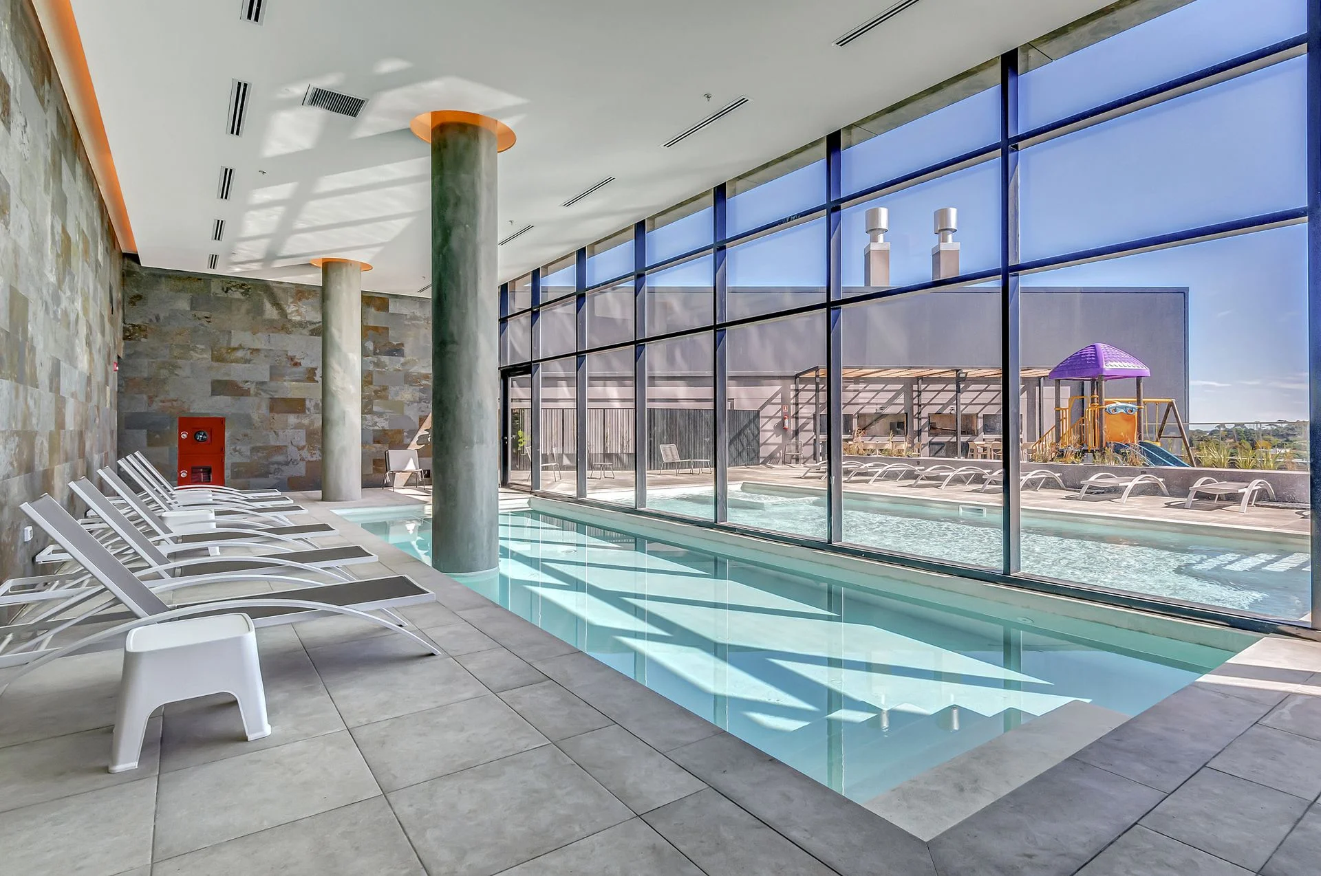 El edificio cuenta con: seguridad las 24 Hs, piscina climatizada interior y exterior, ambas con sector definido para niños, orientadas al noroeste, solárium equipado con reposeras, camastros y sombrillas. Sala de Masajes.