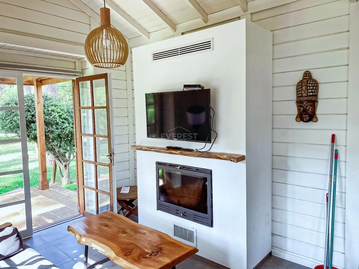La casa tiene living/comedor con estufa de alto rendimiento.
