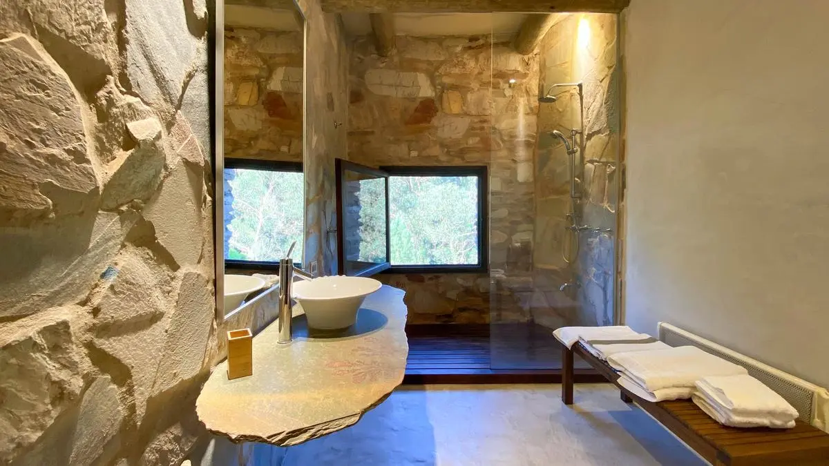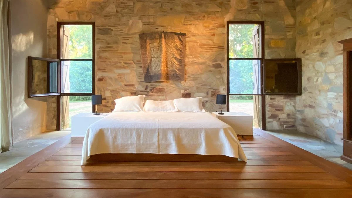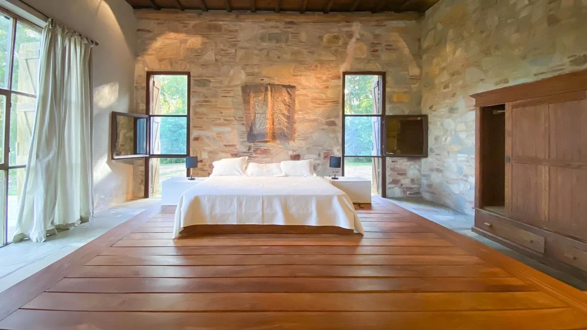 La propiedad ofrece cinco dormitorios, tres de ellos en suite, destacándose la suite principal en planta baja, que brinda máxima privacidad y confort. Los otros cuatro dormitorios se encuentran en la planta superior, asegurando espacios amplios y luminosos.