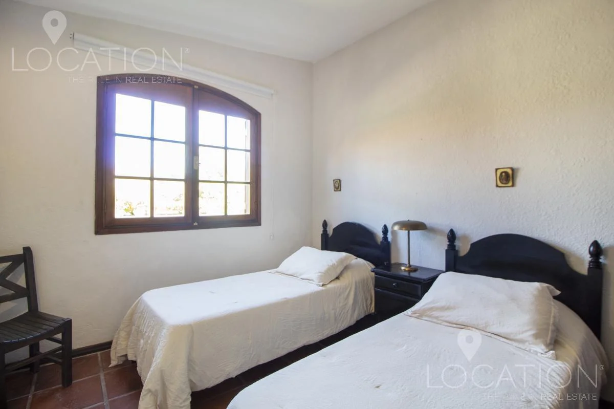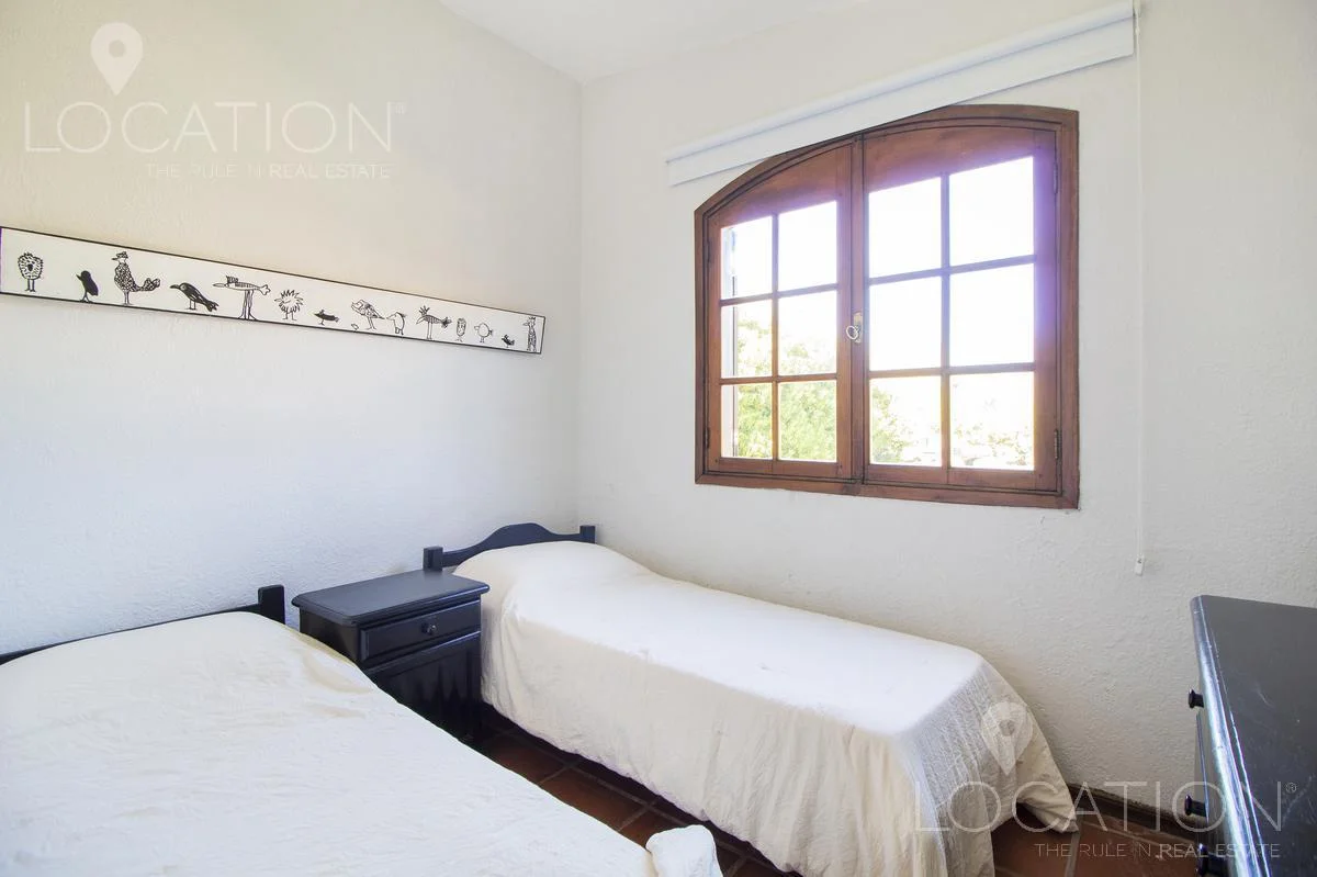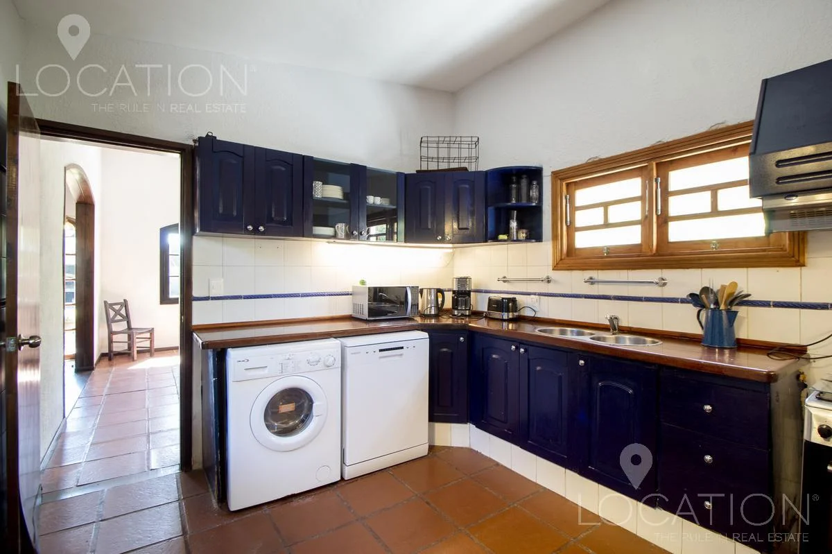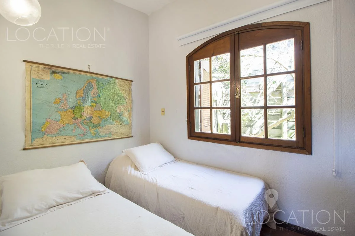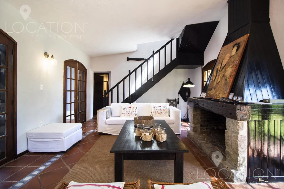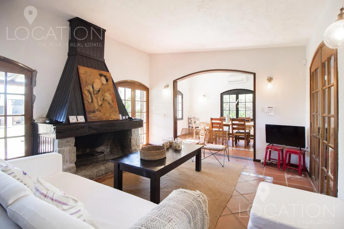 En planta baja, living con hogar a leña, comedor con equipo split, cocina amplia definida y dependencia de servicio. Al oeste, 3 dormitorios que comparten un baño. En planta alta, master suite con terraza independiente.
