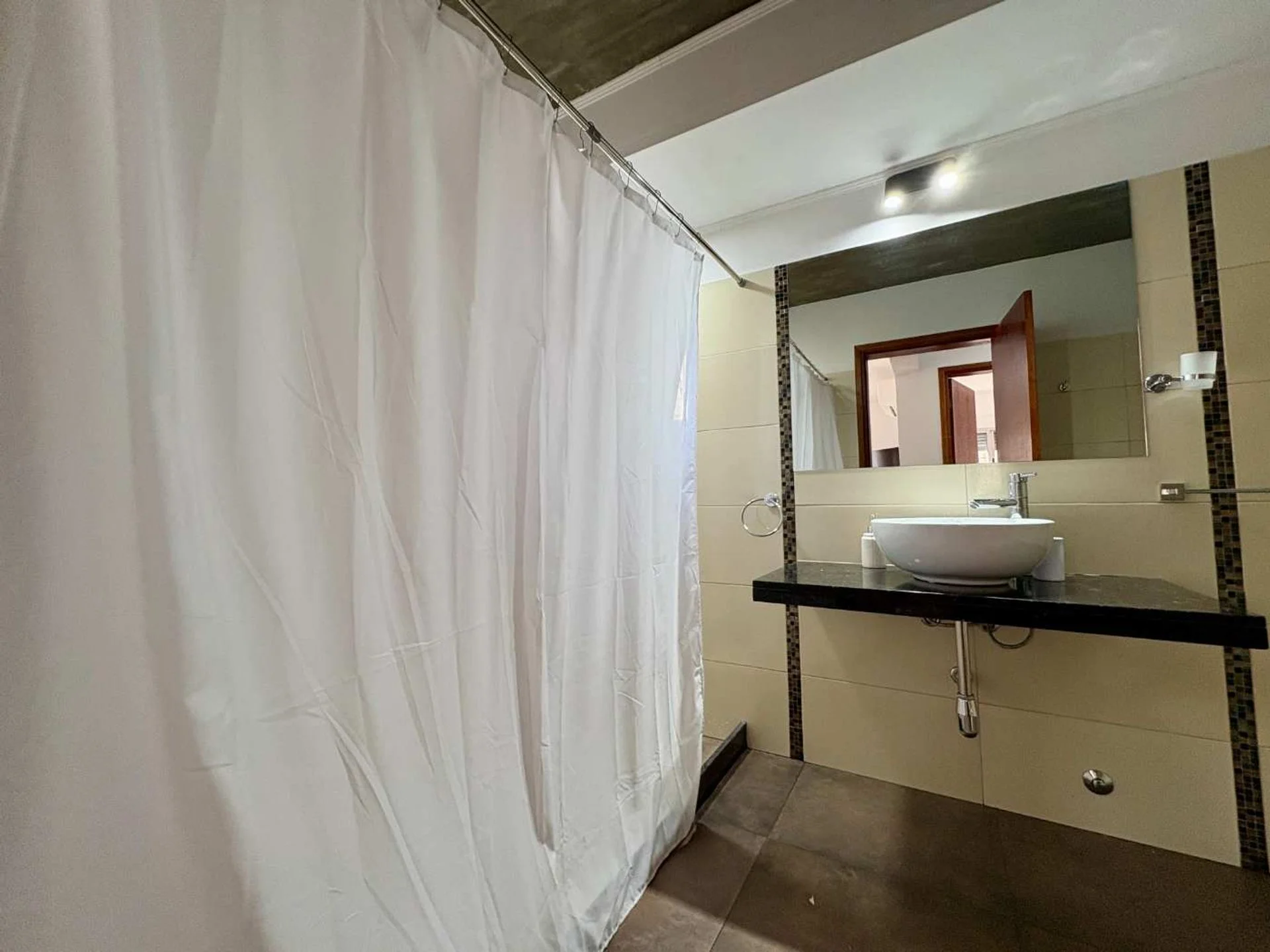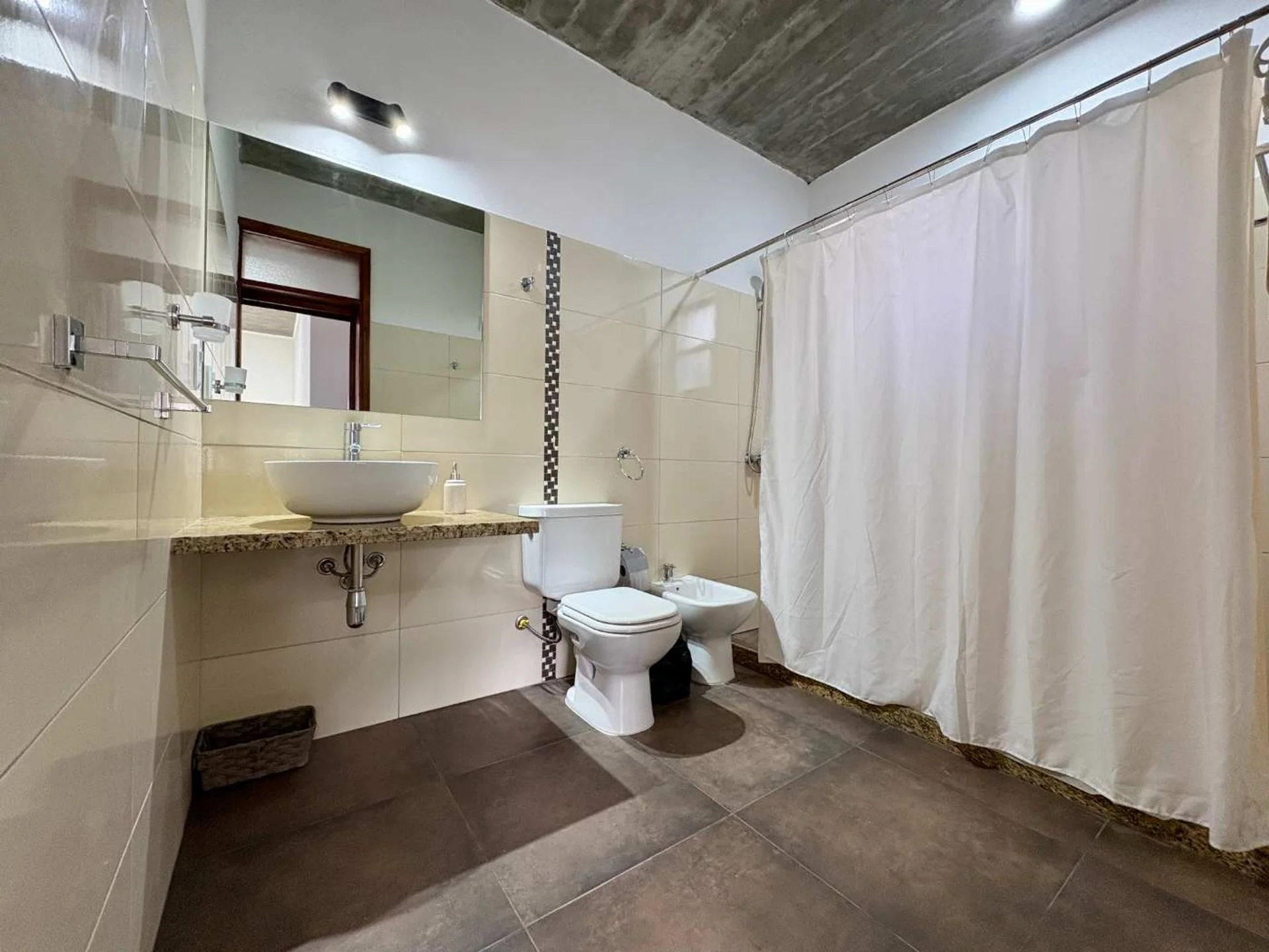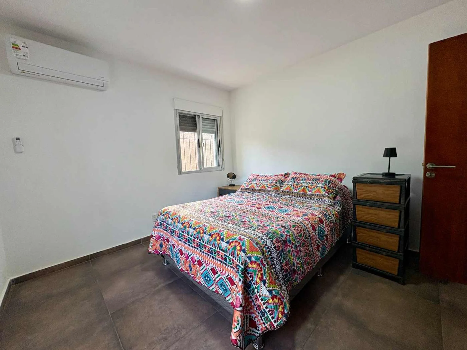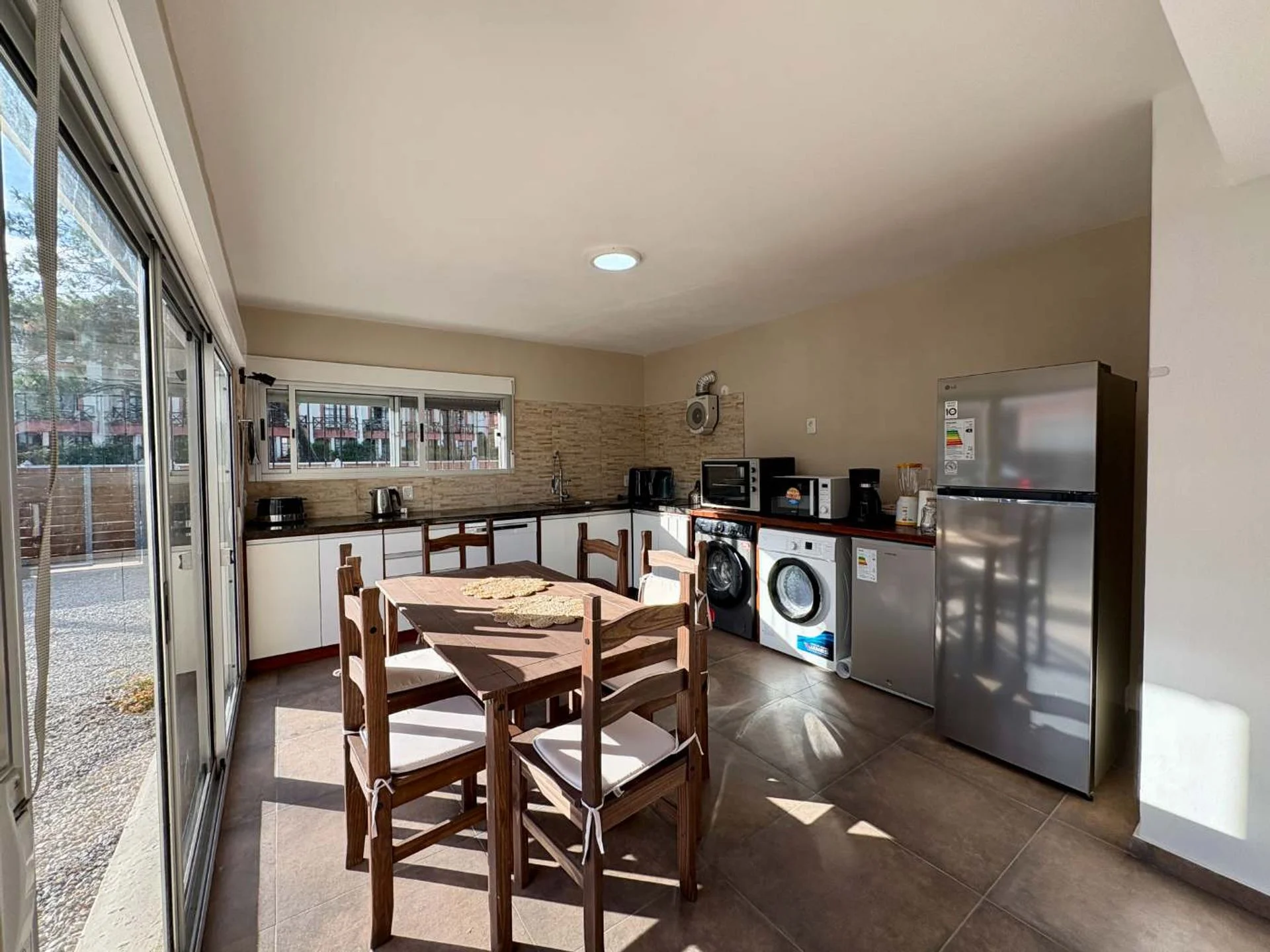 En planta baja se distribuye un amplio living comedor con aire acondicionado, cocina integrada totalmente equipada con horno eléctrico, anafe, lavarropas, secarropas y todos los utensilios necesarios para facilitar el día a día. También dispone de un dormitorio con cama matrimonial, aire acondicionado y dos baños completos.