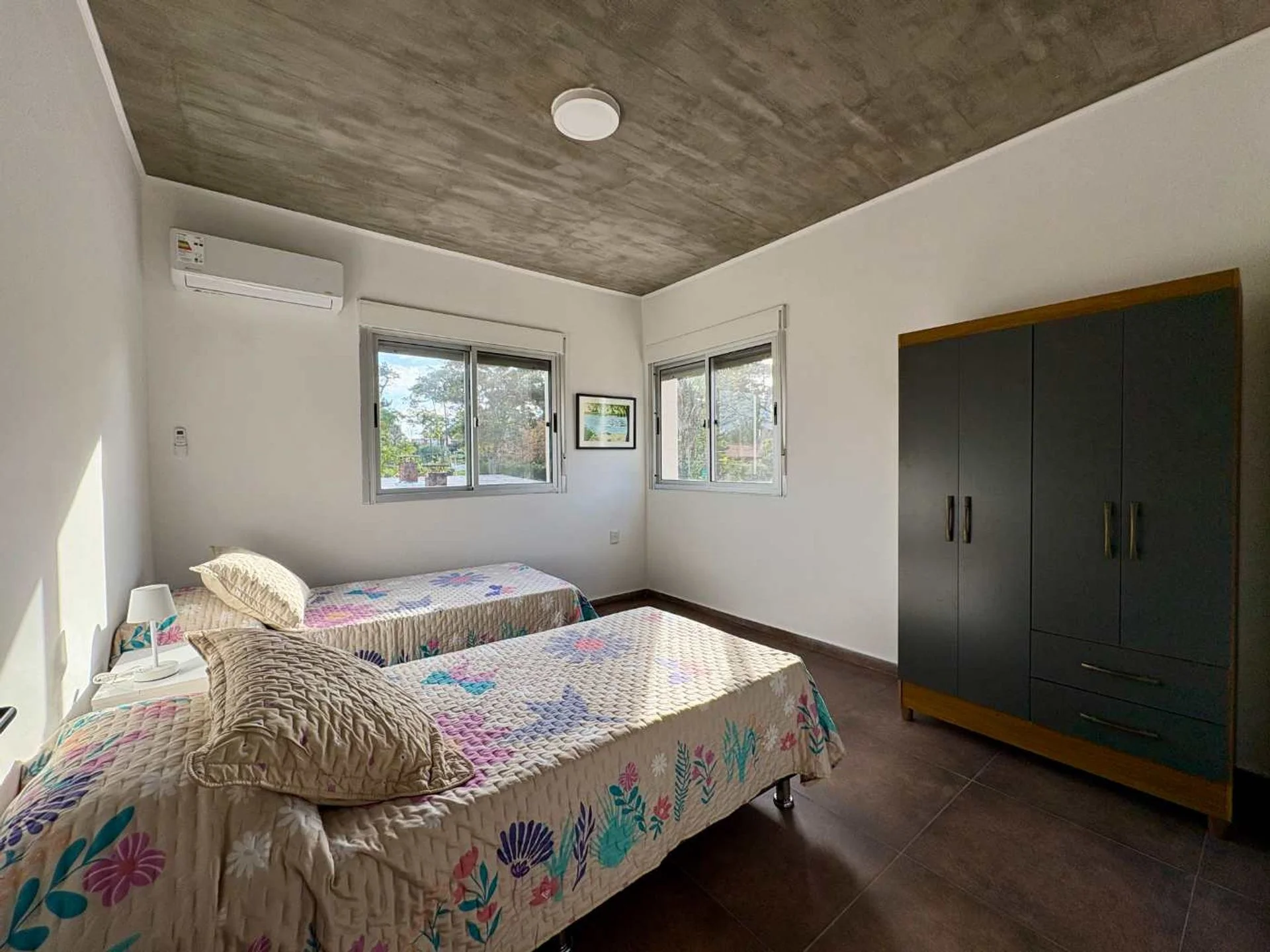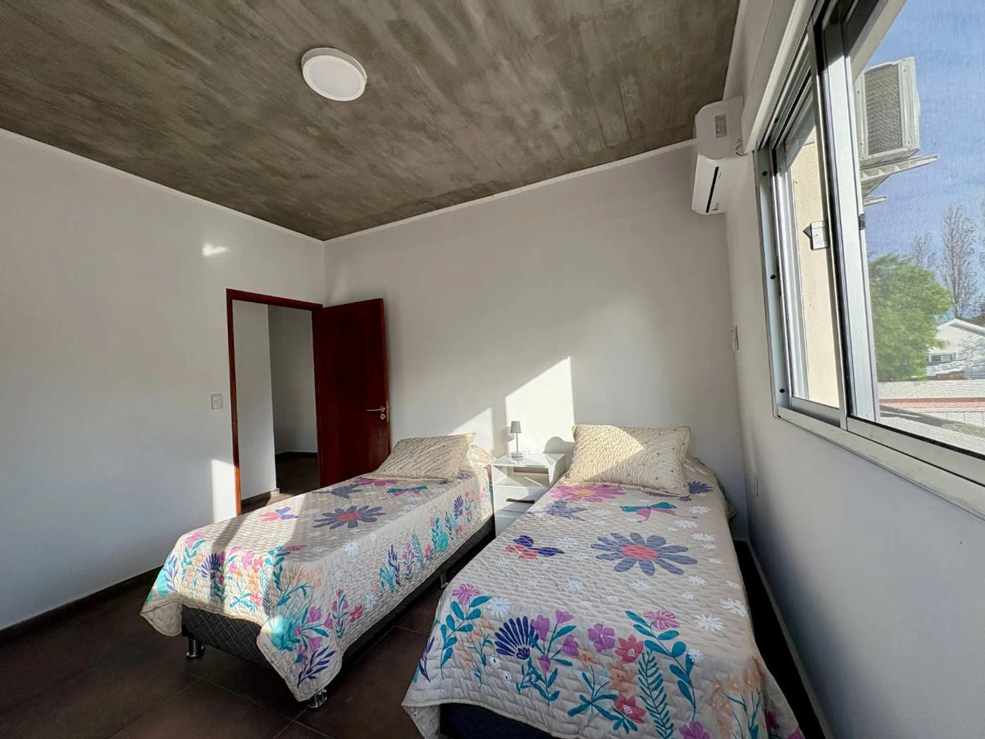 En planta alta se encuentran dos dormitorios, ambos con aire acondicionado, un medio dormitorio con cama de una plaza y un tercer baño completo. La propiedad cuenta además con dos terrazas, parrillero, portón eléctrico y sistema de alarma.