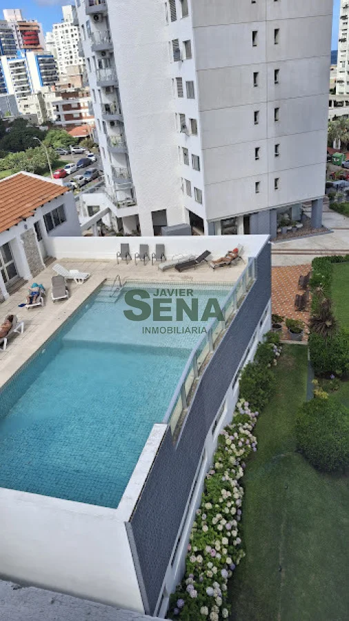 Alquiler temporal de Apto en pda 2 de la brava, de 3 dormitorios, 2 baños uno en suite, el principal con balcón, cocina con lavadero, living comedor con balcón, garage, servicio de portería las 24 hs, de mucama, cancha de paddel , de fútbol y basquet, piscina interior y exterior climatizadas, gimnasio, sauna, lavadero, sala de juegos.