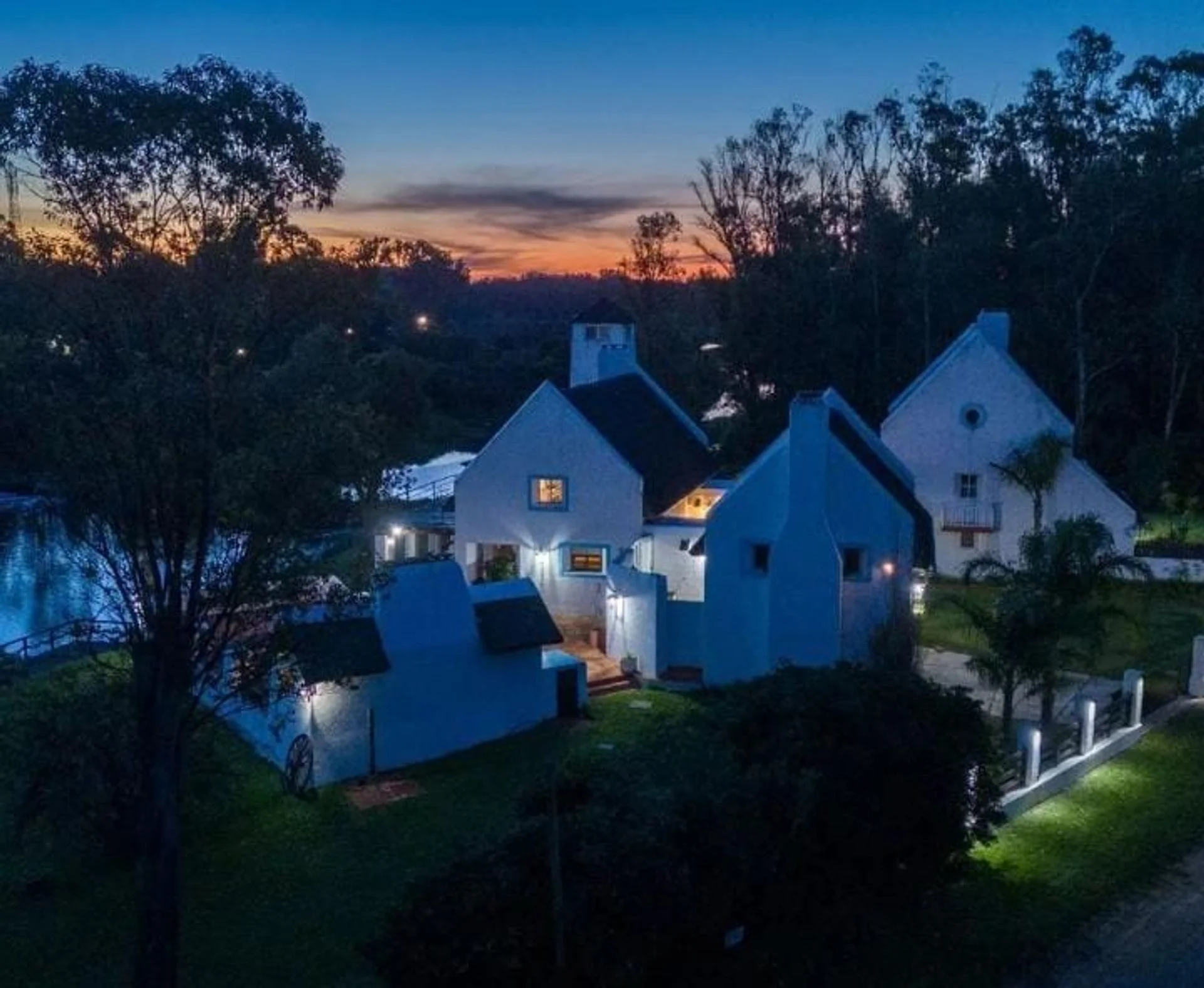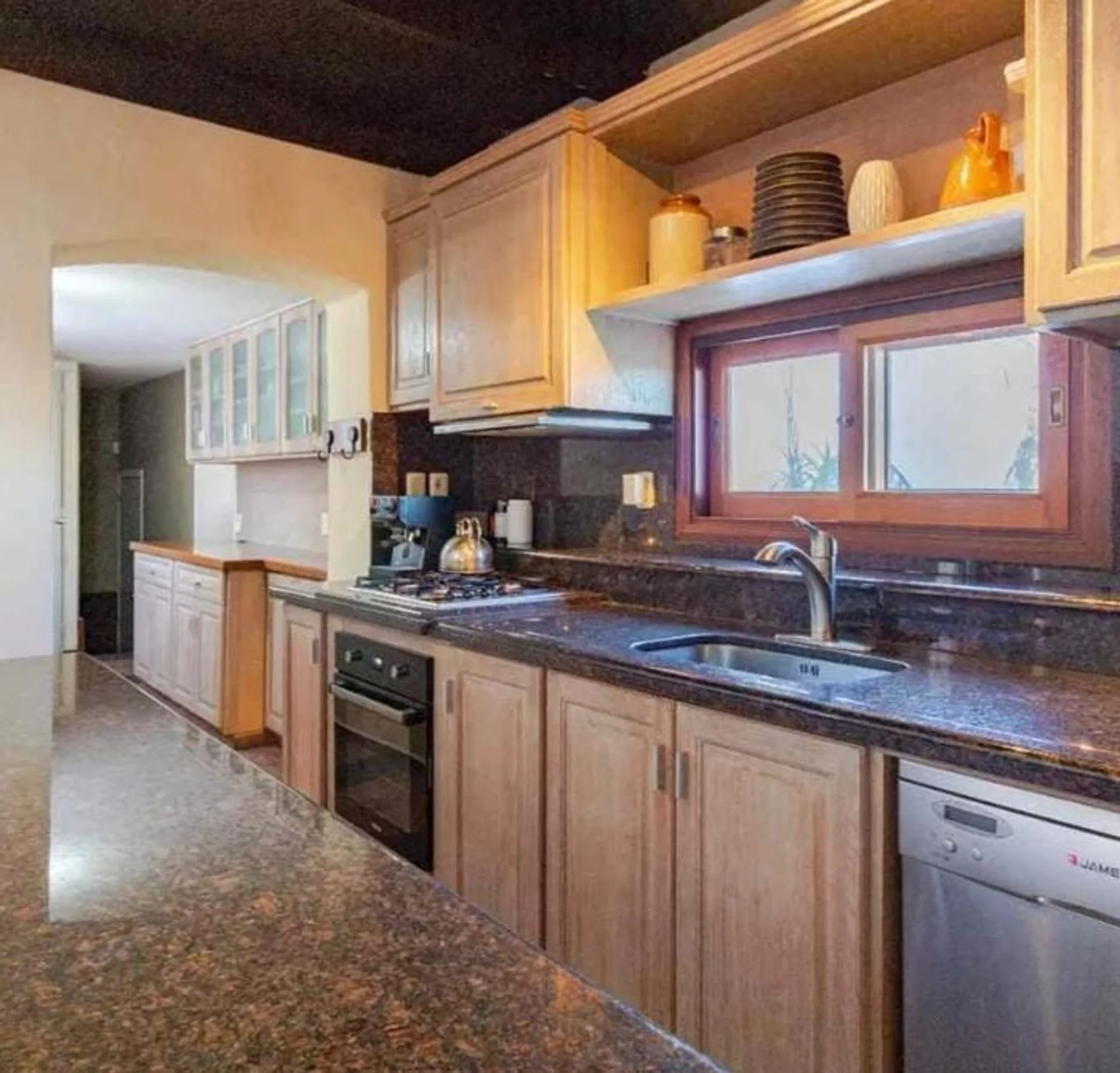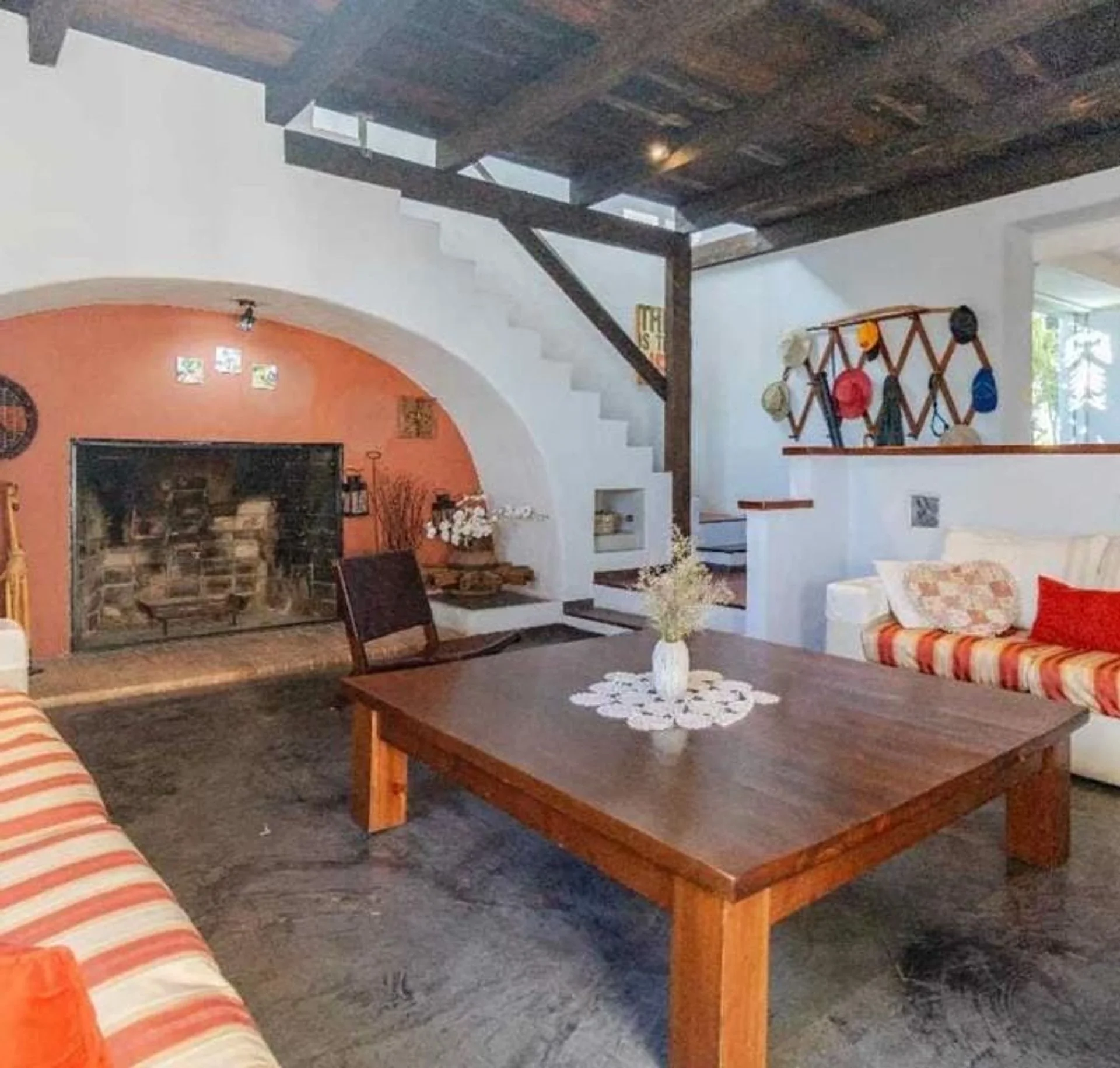 Distribuida en dos plantas, la planta baja cuenta con un espacioso hall de entrada, un luminoso living con un entrepiso y una terraza con vistas panorámicas. También cuenta con un comedor con vistas a la cañada, una cocina equipada con desayunador diario y vista a la piscina. Además, dispone de tres dormitorios en suite y un toilette, todo ello decorado para ofrecer espacios cálidos y acogedores.